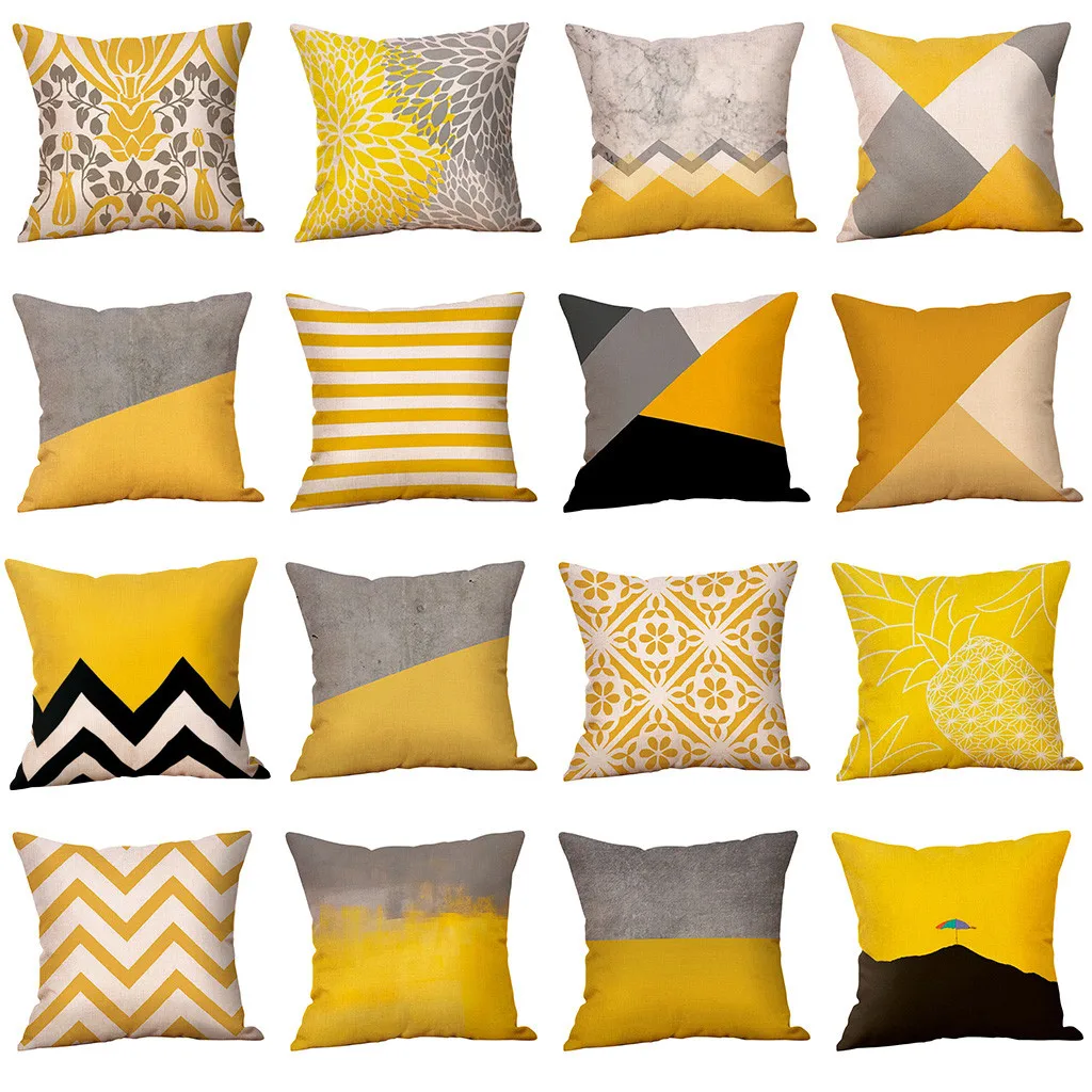 Горчичный декоративный чехол для подушки Желтый геометрический осень Осенняя подушка