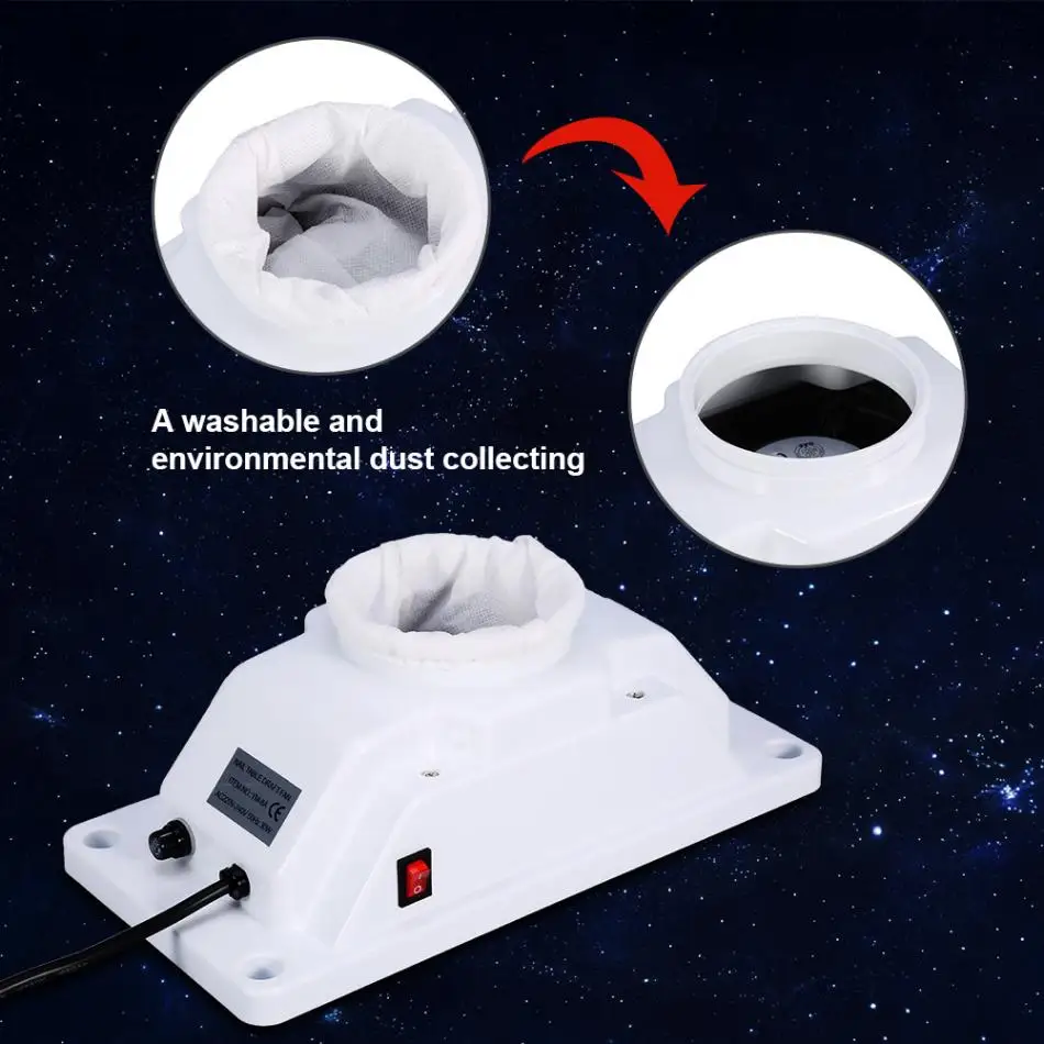 Каждый раз он производит полировальную пыль, омертвевшую кожу и много других пыли для ногтей, когдаДелать маникюр. Пыль разлетится по всей поверхности и будет трудно вытереть или очиститьПолностью. Этот пылесборник для ногтей с мощным вентилятором может получить все чистые вещиСделано. Больше не нужно беспокоиться о пыли, вызванной маникюром.