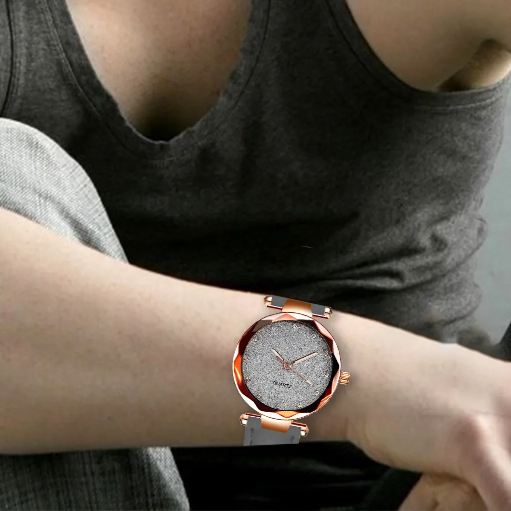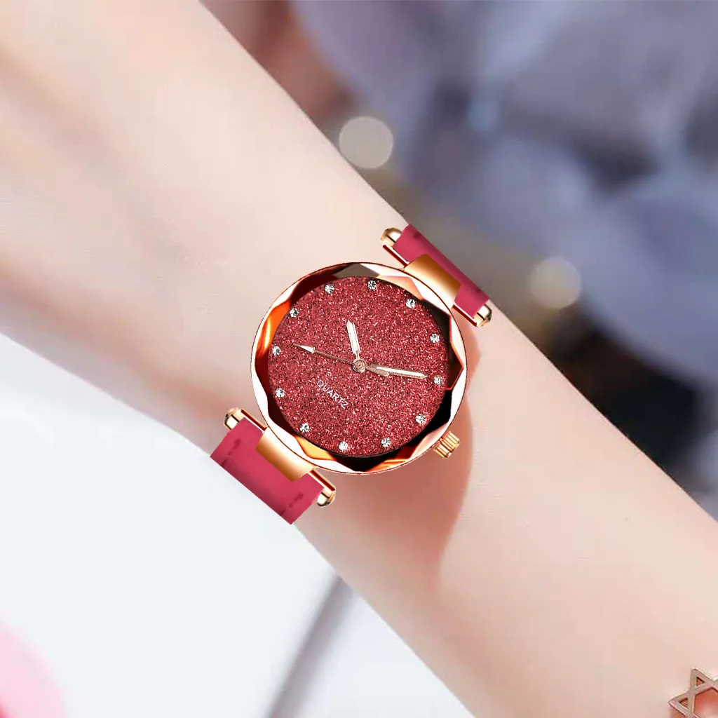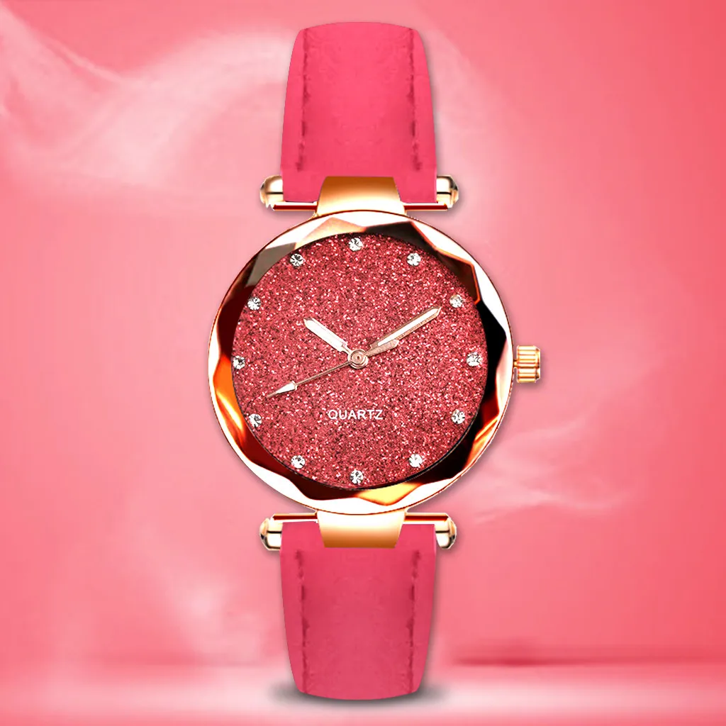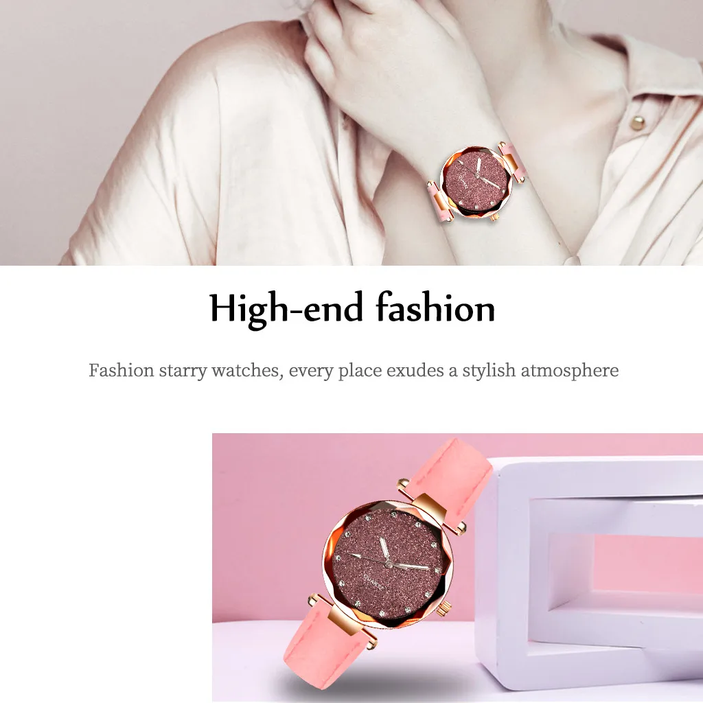 Новые женские модные стразы, розовое золото, кварцевые часы, женские часы с ремешком