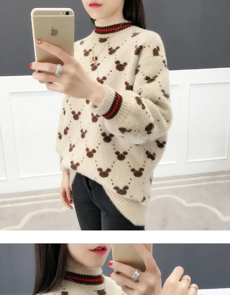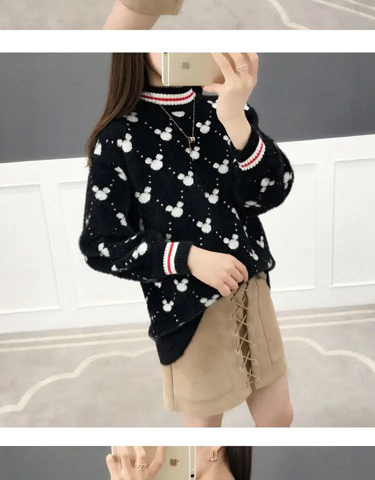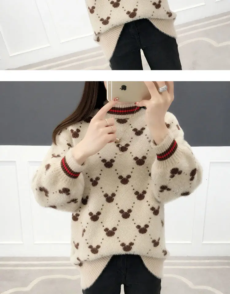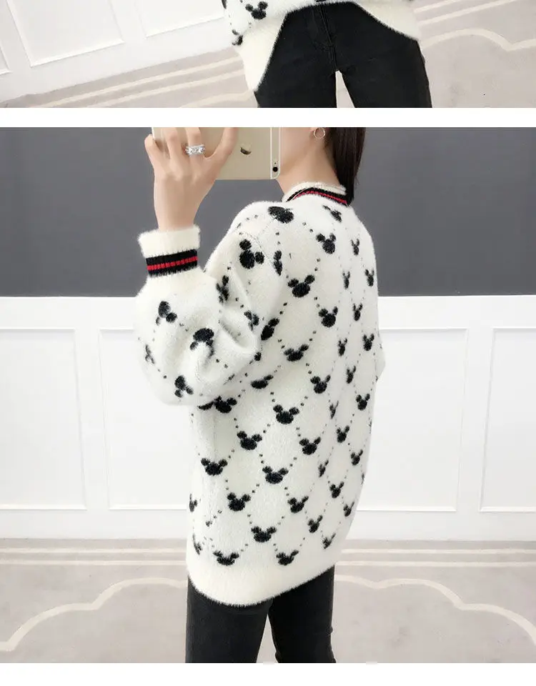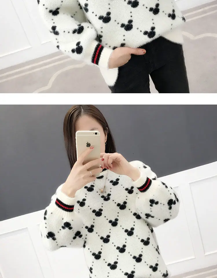 Женские Длинные Пуловеры и свитера с рисунком Микки Мауса, 2019, джемпер оверсайз, свитера, свободные повседневные топы, милые вязаные свитера