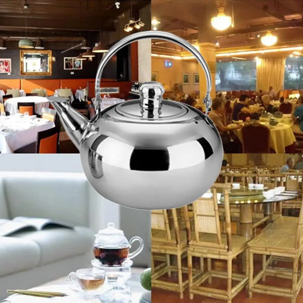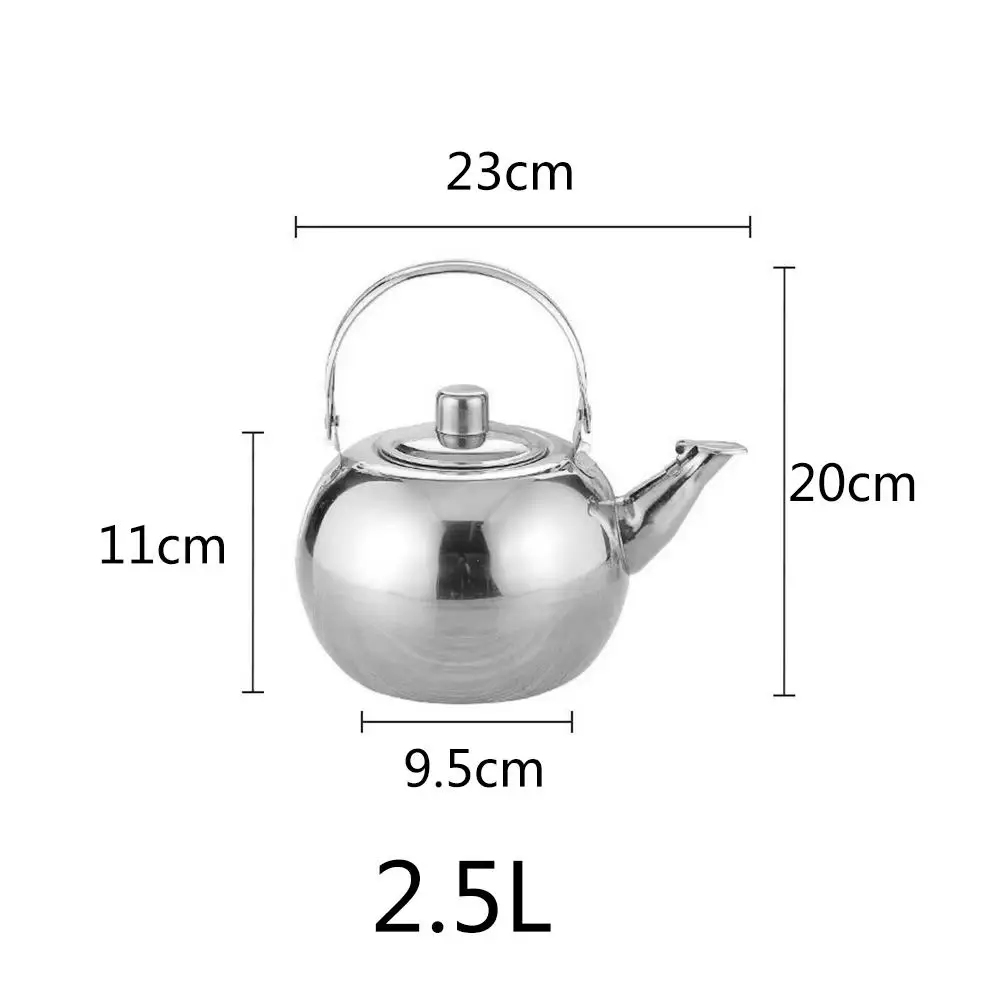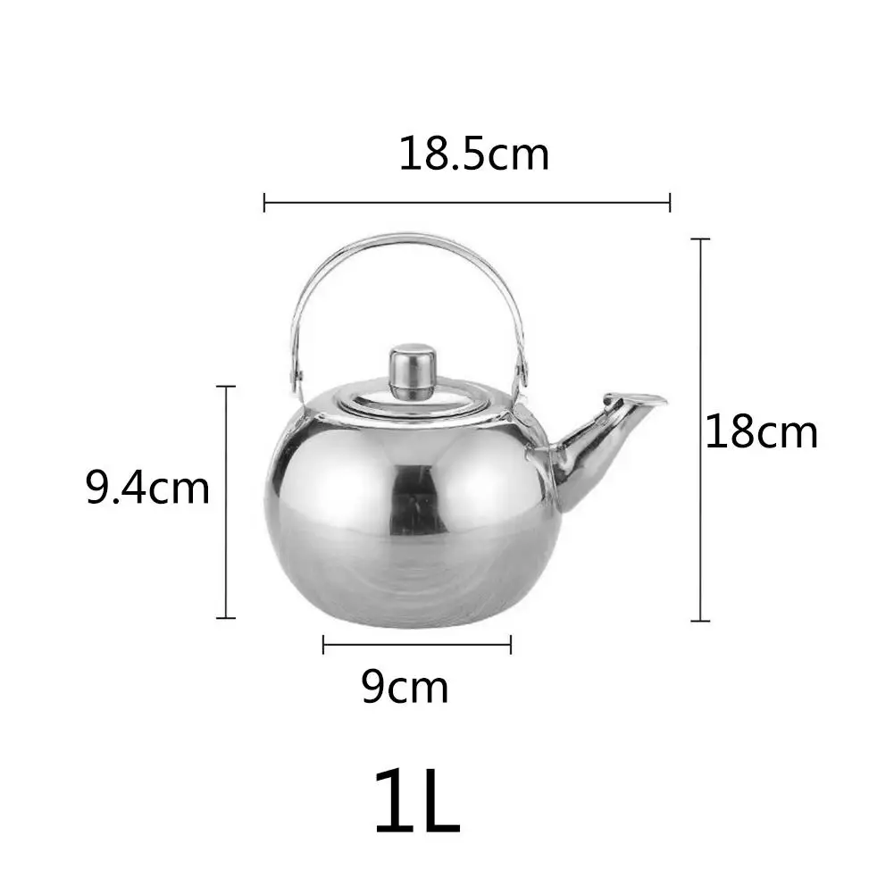 Особенности:1. Носик снабжен крышкой для предотвращения попадания пыли и других примесей в чайник и загрязнения, а также предотвращения протекания воды.2. Конструкция ручки против ожогов обладает хорошей теплоизоляцией и защитой от ожогов.3. Оснащен фильтром для эффективного фильтрации остатков чая.Описание:Материал: нержавеющая стальРазмер: как показаноЕмкость: 1 л, 1,5 л, 2,5 лУпаковочный лист:
