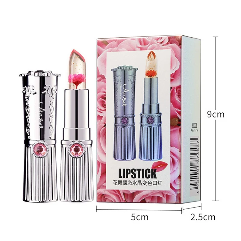 1. Прозрачные желейные помады с золотым блеском, каждая из которых имеет маленький высушенный цветок внутри.
