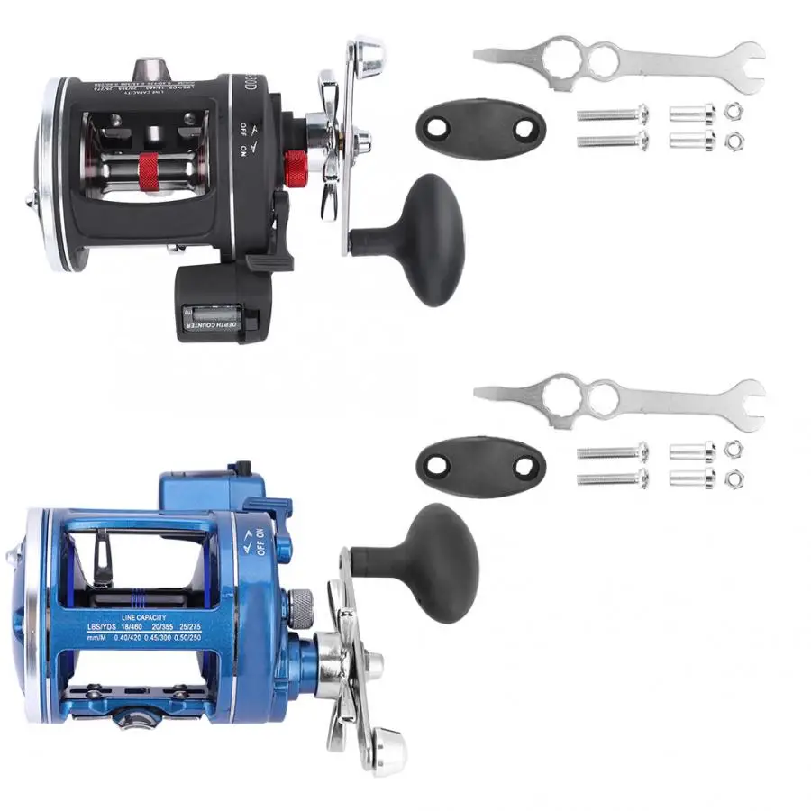Основной корпус из нейлонового волокна, счетчик показывает количество линии. Принимает подшипник из нержавеющей стали, делая супер комфортные ощущения. Более длинная коромысла и большая рукоятка, более удобная в обращении. Вся медная система передачи, износостойкая, взрывобезопасная и Ударопрочная. Ручка для разгрузки в форме звезды, с быстрой и острой регулировкой. Прецизионное направляющее кольцо из нержавеющей стали для предотвращения трения.Вариант: левая черная, правая черная, левая синяя, правая Синяя