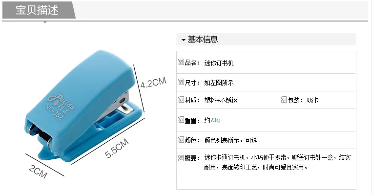 Материал: металл + Пластик Размеры: About5.5 * 4,2*2 см Цвет: зеленый/синий/розовый скобы: около 0,9 см 10 # Количество: 1 комплект (включает в себя 1 * степлер, высокое качество 1 коробка скобы) комплектация: 1 шт. степлер + 1 коробка скобы