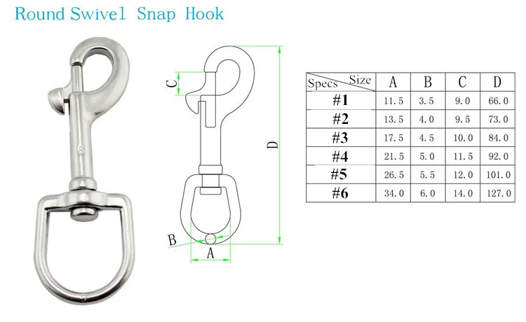 --- Круглый поворотный крючок --- Материал: 100% нержавеющая сталь 316 --- Размер: 6 размеров s --- Использование: брелок, поводок для домашних животных, DIY и т. Д.