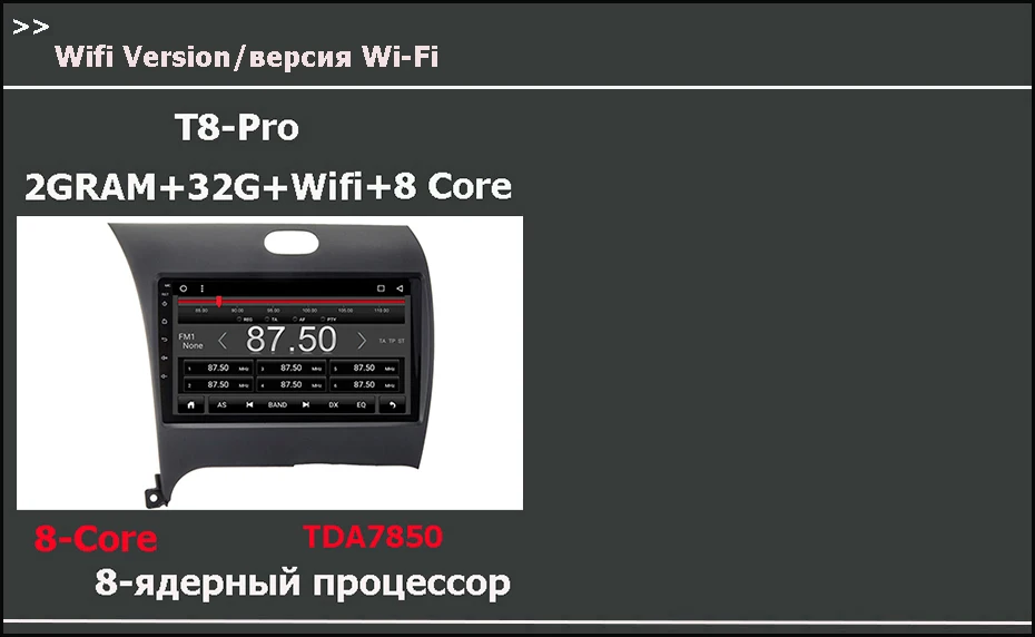 > T8-X(Wifi с 4G)= 8 ядер <4 ядра + 4 ядра> + 2G RAM + 32G ROM + DSP + поддержка установки 4G sim-карты + Wifi + AHD камера заднего вида подарок/