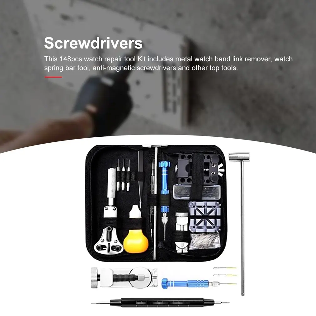 1. Этот набор инструментов для ремонта часов 148 шт. включает в себя устройство для снятия металлических лент часов, инструмент для пружинной арматуры часов, антимагнитные отвертки и другие верхние инструменты.