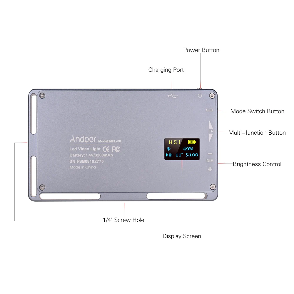 Andoer портативный 2500K-8500K мини Карманная камера заполняющий светильник RGB LED видео селфи светильник Панель затемнения OLED экран Встроенный аккумулятор