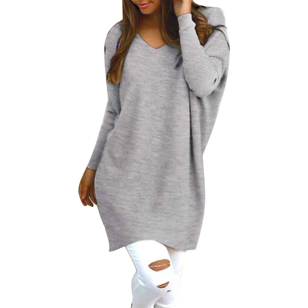 Модные женские туфли с v-вырезом и длинным рукавом, туника-пуловер повседневное вязаное Свободное свитер