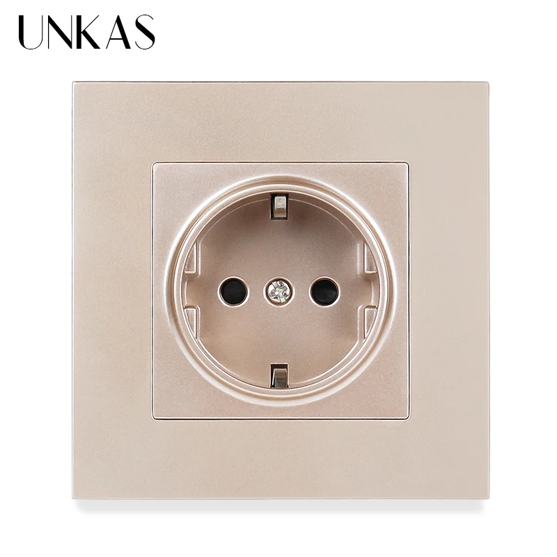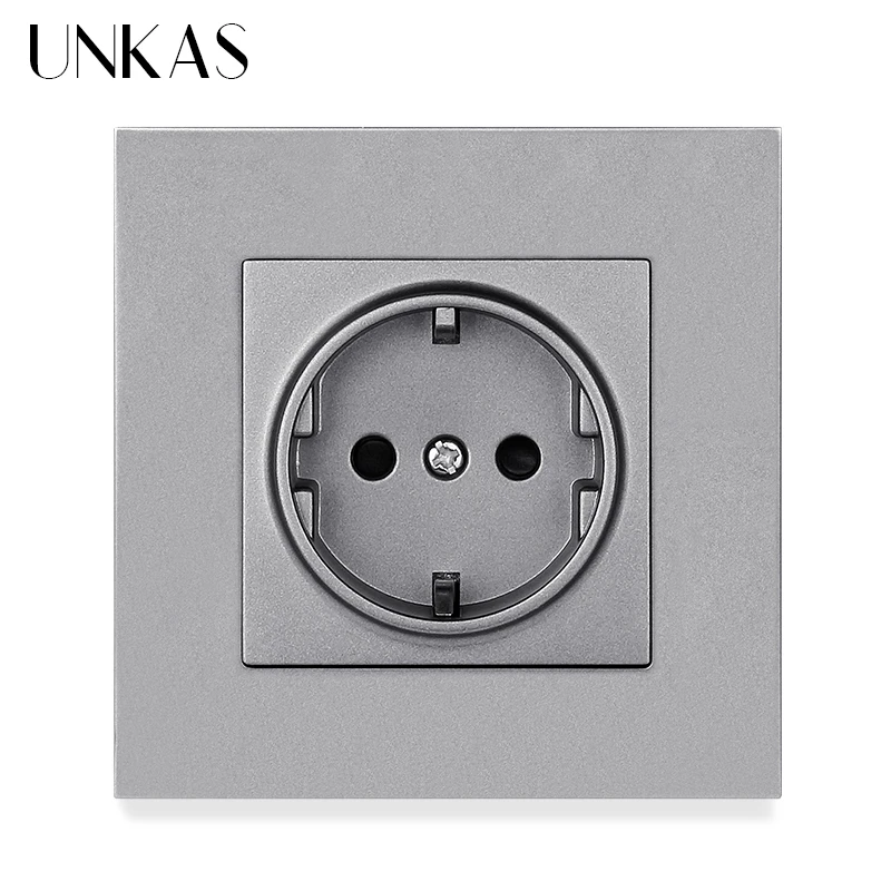 Пластиковая панельная настенная розетка UNKAS из поликарбоната с заземлением, 16 А, европейская стандартная электрическая розетка, черная, белая, золотая, серая, цветная