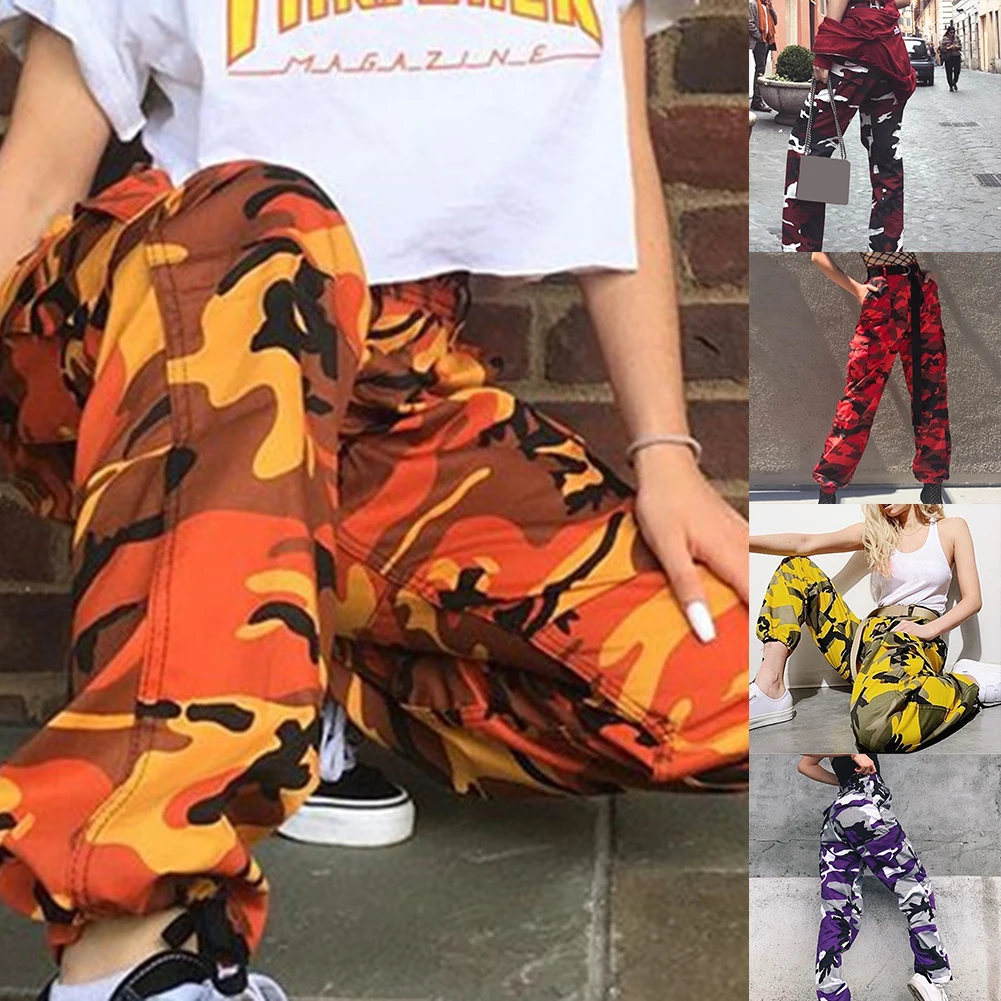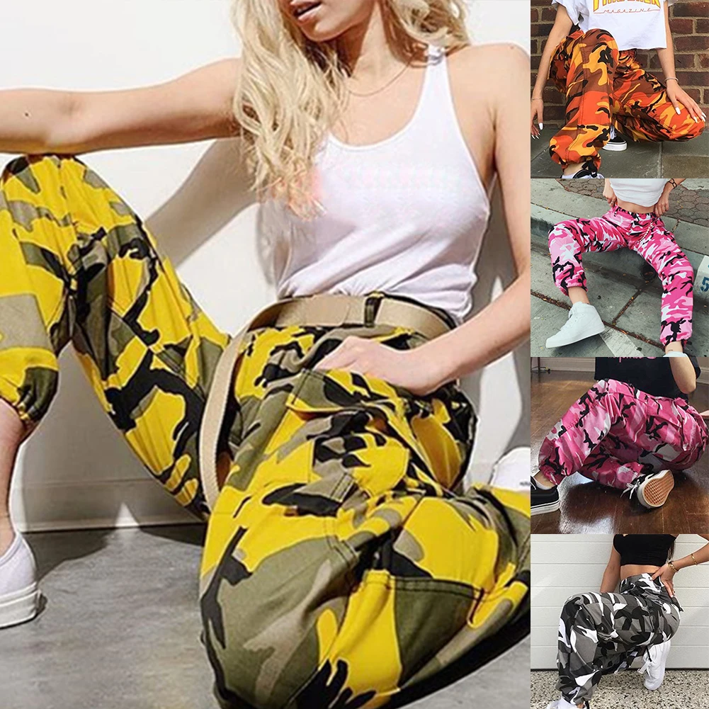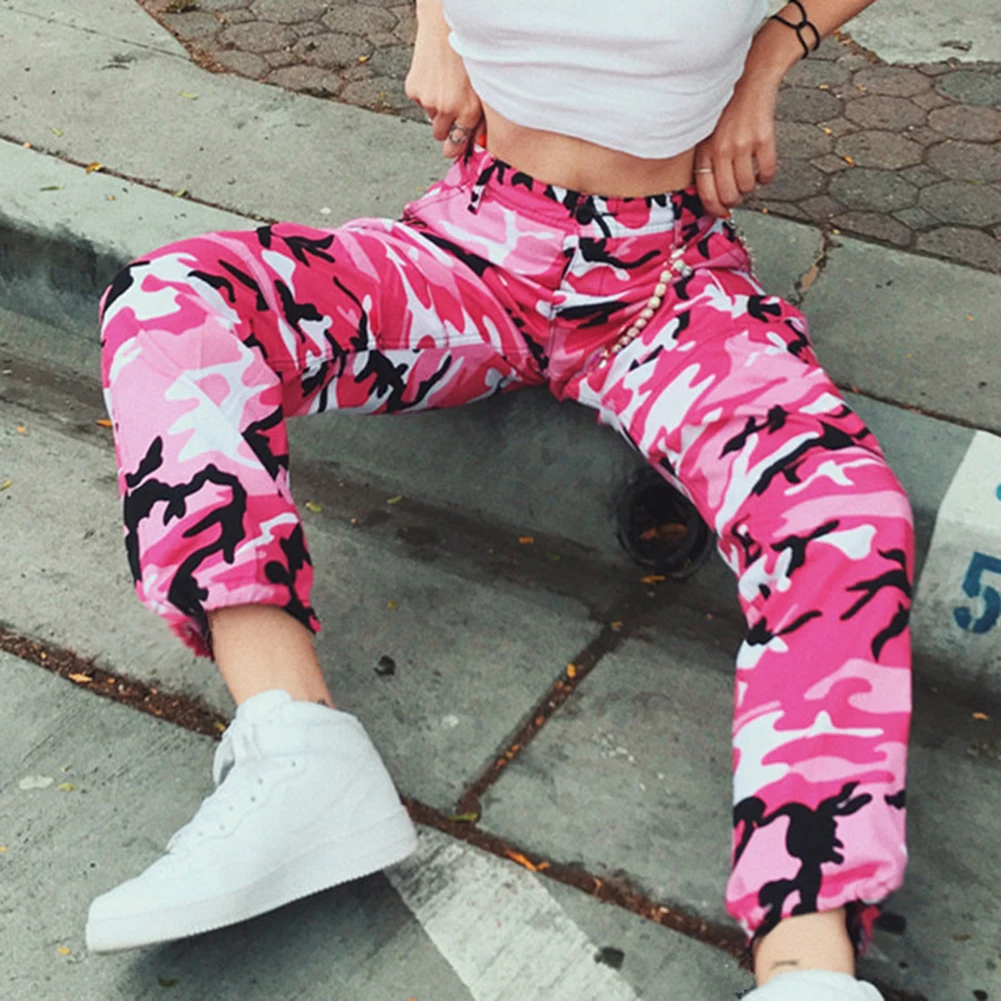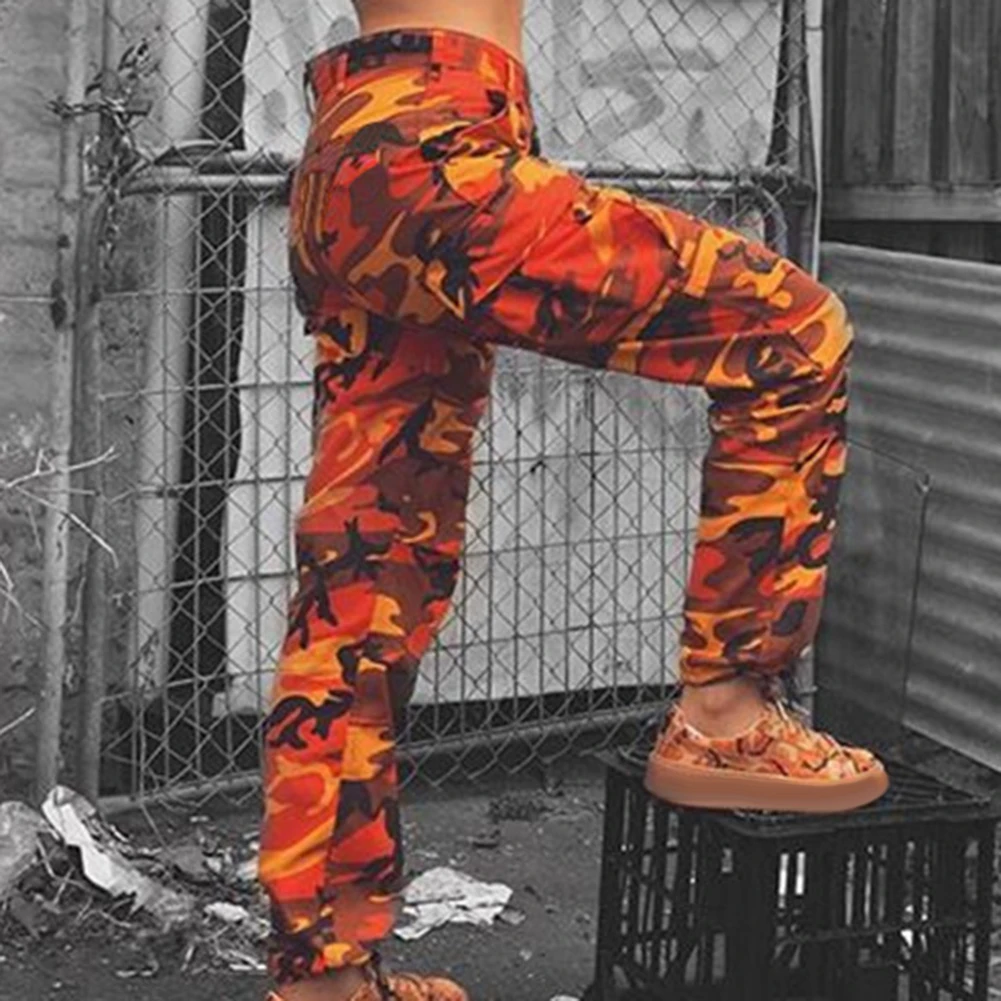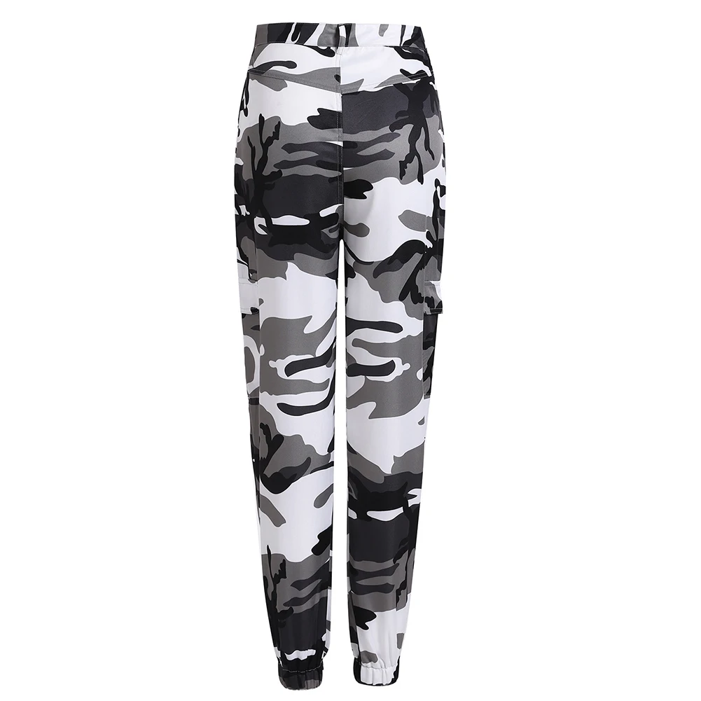 Женские повседневные эластичные спортивные брюки-карго с камуфляжным принтом, брюки с завязками на щиколотке