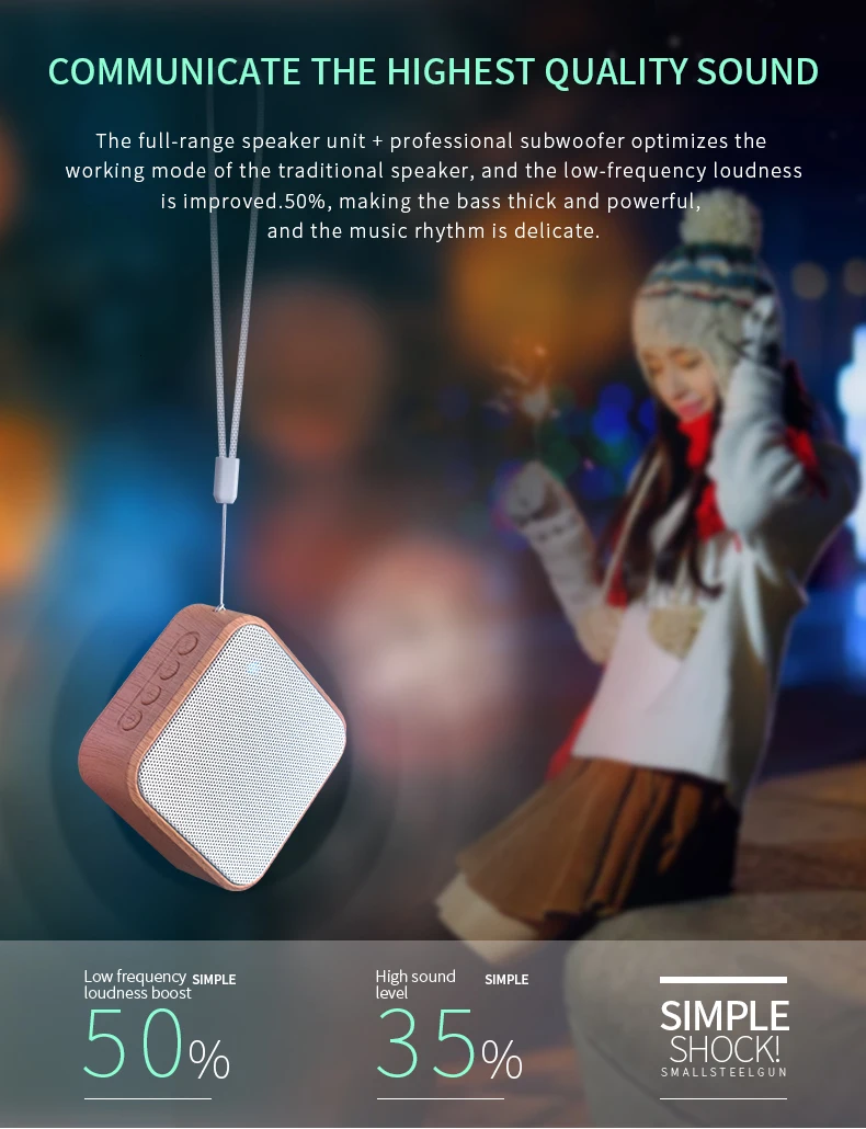 1 Название продукта: A70 2 Bluetooth/карта/внешний вход/голосовой вызов 3 Высокое качество 600 мАч литиевая батарея, 8 часов при средней громкости 4 динамика: 4 Ом 3 Вт * 1 5 расстояние передачи Bluetooth 10 м 6 цветов: дерево зерно белый/дерево зерно черный 7 Размер изделия: 83*81*35 мм 8 мм, Вес нетто: 0,25 г
