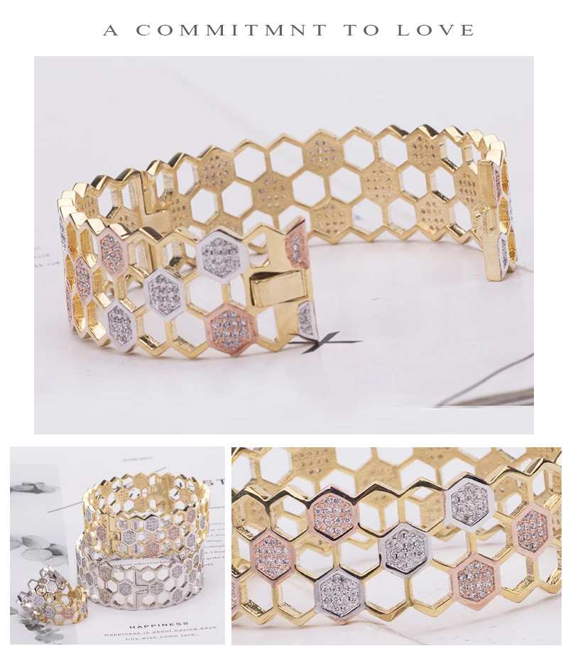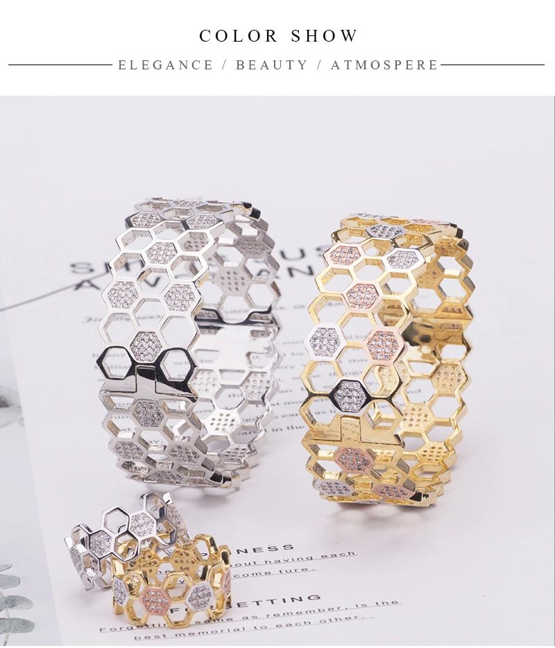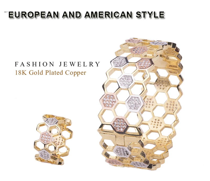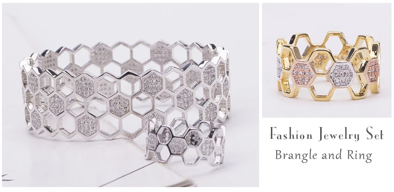 Модный дизайнерский двойной цвет соты браслеты кольца наборы шестигранной формы высокого качества циркон набор украшений для женщин роскошный подарок