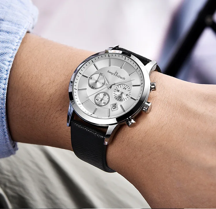 Состояние: 100% новый бренд Циферблат Диаметр: 4,4 см Длина ремешка: 23 см Механизм: кварцевый хронограф (3 небольших циферблата) Материал ремешка: кожа/сталь Вес (прибл.): 56/87.6 г Водонепроницаемость: 3 АТМ (нельзя плавать/нырять) Стиль: Для мужчин часы Посылка: 1 * часы