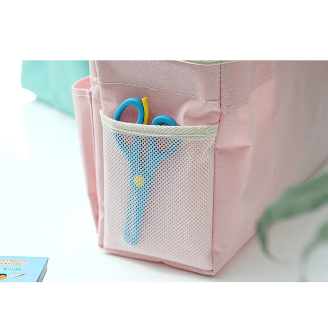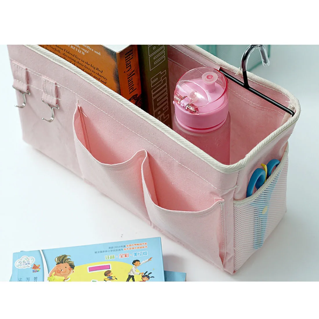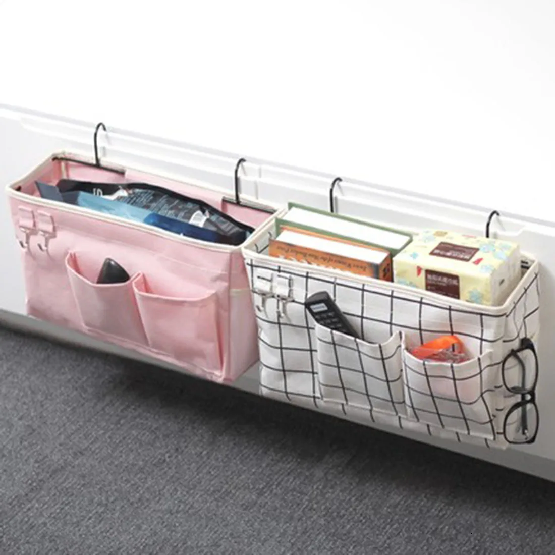 Прикроватная подвесная сумка для хранения вещей Органайзер держатель для кровати в общежитии двухъярусные кровати-белая/серая полоса/черно-белая сетка/светильник-розовый