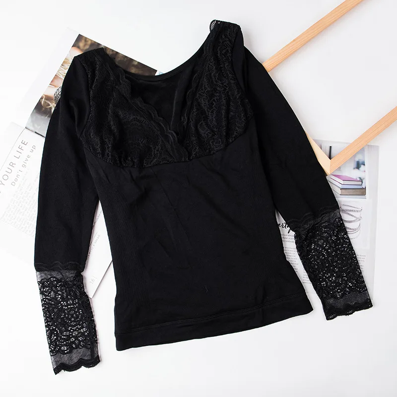 Нижнее белье большого размера, кружевное, длинный рукав, длинное, зимнее, женское, сексуальное, термобелье, топ для женщин, облегающее, для девушек, интимное