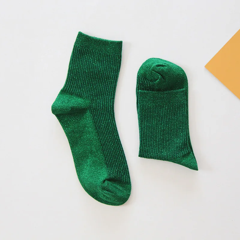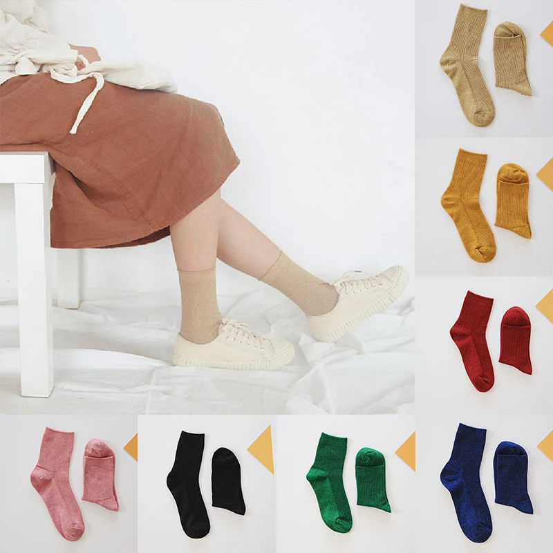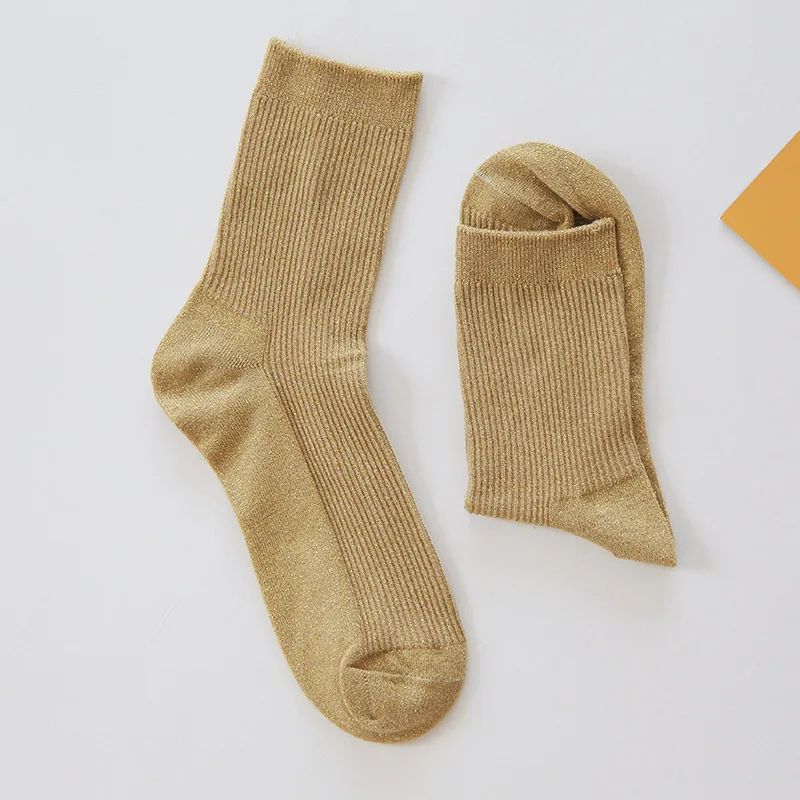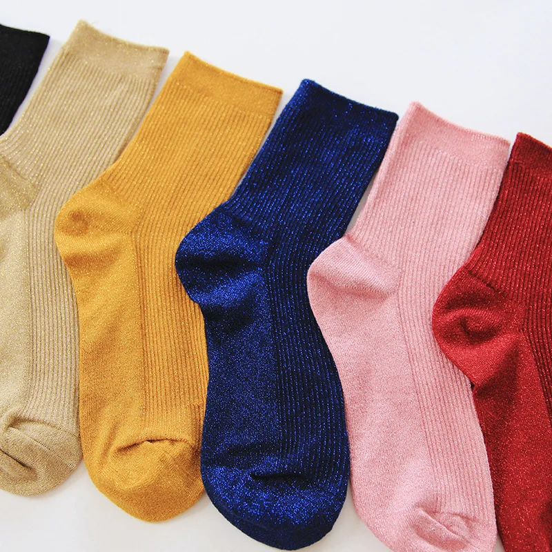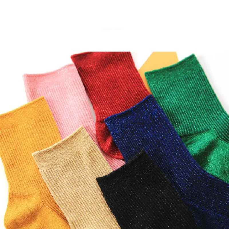 Серебристые золотистые носки с ворсом из проволоки, японская мода, блестящие стеклянные шелковые женские носки