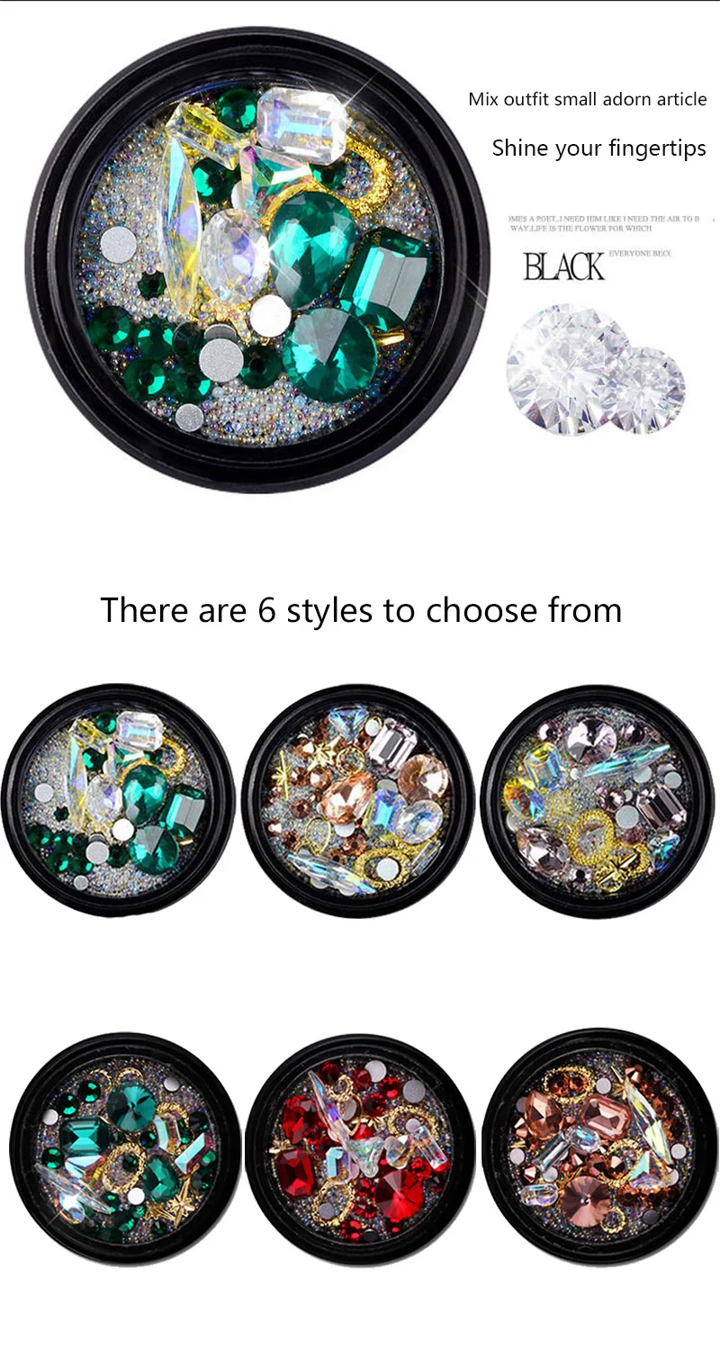 Форма спецификации: Смешанная форма Материал: сплав, кристалл AB Цвет: Цветной Вес: около 16 г Диаметр колеса: около 6 см * 6 см * 1 см комплектация: 1 x украшение для ногтей (опционально) Описание: легко наносится только с помощью небольшого клея, затем нажмите на ногти. Вы также можете украсить свой мобильный телефон, книгу, чехол для плеера, карту, стекло и другие DIY. Подходит для использования поверх лака для ногтей, УФ-геля, акрила и т. д. это делает ваши ногти элегантными и особенными.