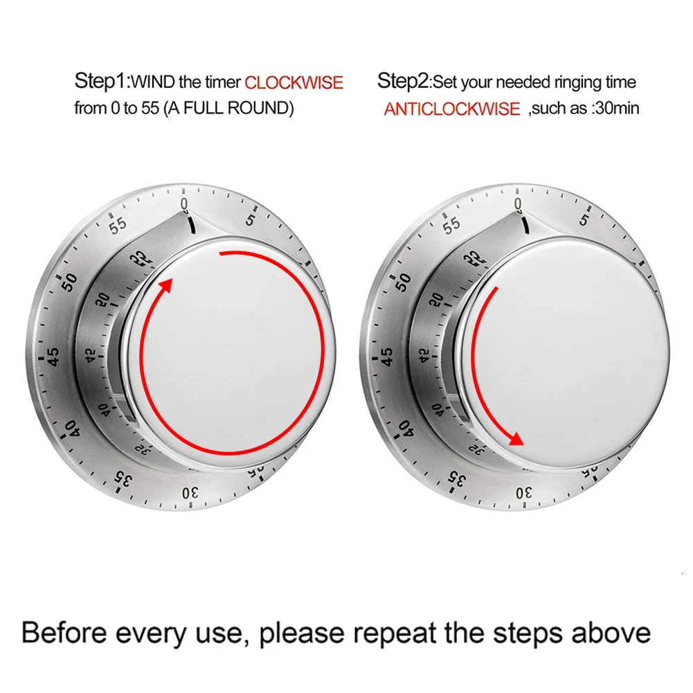 Описание: 1. Этот таймер является отличным устройством для установки времени для приготовления пищи/выпечки дома, чтобы отслеживать время на кухне. 2. Просто прикрепите таймер к духовке, холодильнику или любой железной поверхности с магнитной подложкой. 3. Абсолютно новый и высококачественный механический кухонный таймер с магнитным основанием. 4. Таймер обратного отсчета широко используется для приготовления пищи, выпечки, мытья и других проектов синхронизации. 5. Механический таймер имеет встроенный сигнал тревоги, чтобы оповещать о времени. Звук будильника достаточно громкий, чтобы его было легко слушать в условиях низкого уровня шума. Применение метод: Шаг 1. Поверните таймер по часовой стрелке на номер 55. Это поможет установить сигнализацию. Шаг 2. Поверните таймер против часовой стрелки, пока вы не достигнете желаемого времени. Шаг 3. Вы услышите тикающий звук. Это означает, что ваш таймер включен. Шаг 4. Когда время истекает, таймер запустит сигнал тревоги, чтобы уведомить вас. Технические характеристики: Состояние: абсолютно новый Материал: нержавеющая сталь и АБС-пластик Цвет: серебро Режим работы: механический Погрешность времени: +/-1 минута Вес: прибл. 100 г Размер: прибл. 8*3 см/3,1 * 1.1in Посылка включает в себя: 1 * механический кухонный таймер Примечания: 1. При встряхивании таймера может быть небольшой дребезжащий звук. Это нормально. 2. Не Поворачивайте таймер за его максимальный предел, так как это может привести к повреждению.