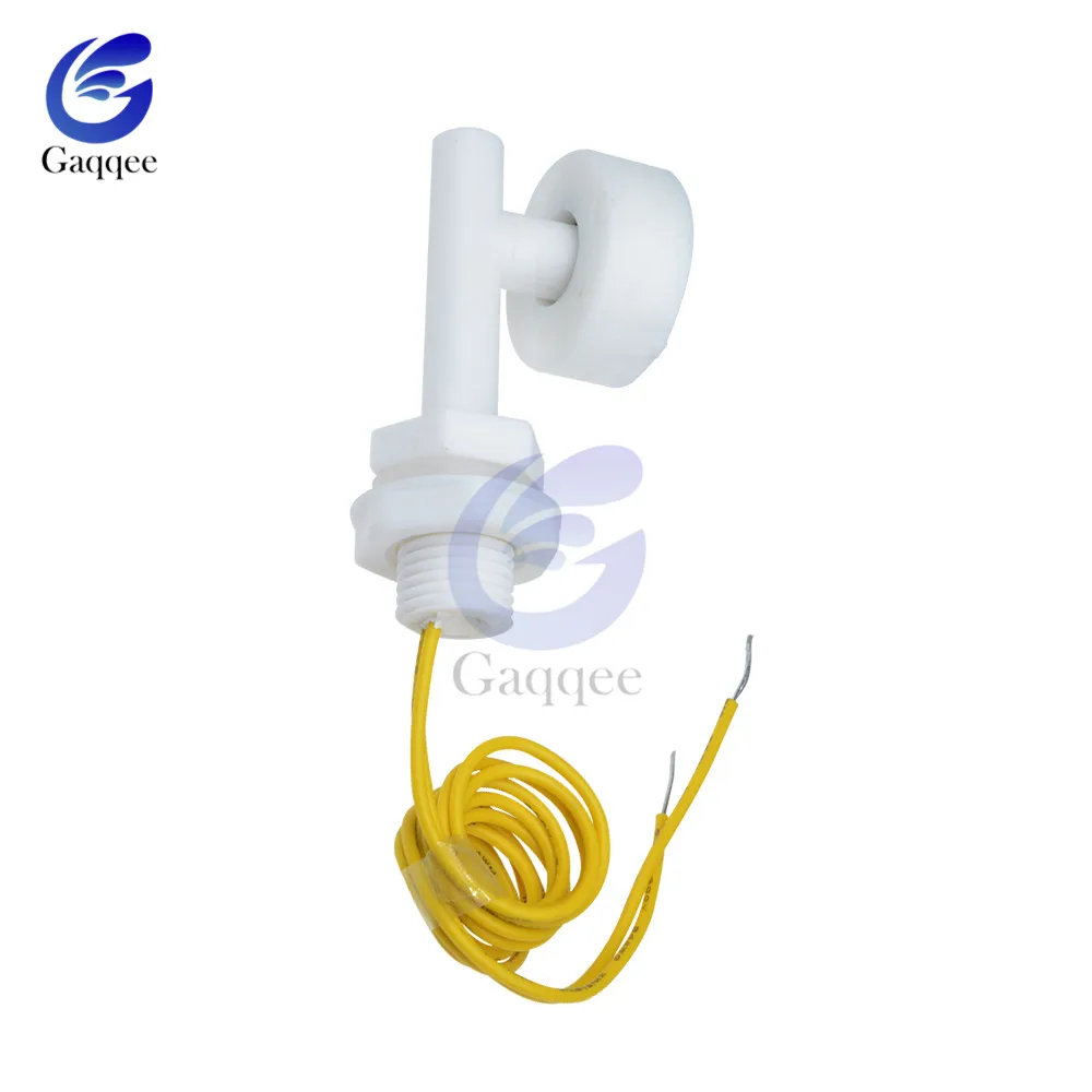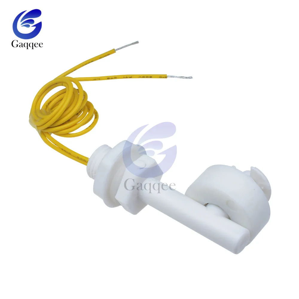 A float switch is a device used to sense the level of liquid within a tank. The switch may actuate a pump, an indicator, an alarm, or other device. Liquid level sensor using imported switching elements, with lightweight, the working principle is simple, reliable, inexpensive features. Products can be used for drinking fountains, water heaters, solar, air conditioners, humidifiers, bathroom equipment, vending machines, tanks, water towers, chemical liquid level control, kitchen equipment, water heaters, etc. This is a mini float switch. Contains no for mercury. Specifications: Cable Length: 37.5cm Max Breakdown Voltage: 220V DC Max Switching Voltage: 100V DC Maximum Switching Current: 0.5 A Max Load Current: 1.0 A Max Contact Resistance: 100 mΩ Temp Rating: -10~+85°C Installation: top or bottom mounted vertically Use medium: water, oil, chemical medium Pressure range: 0.2MPa Package include 1x Right Angle Float Switch