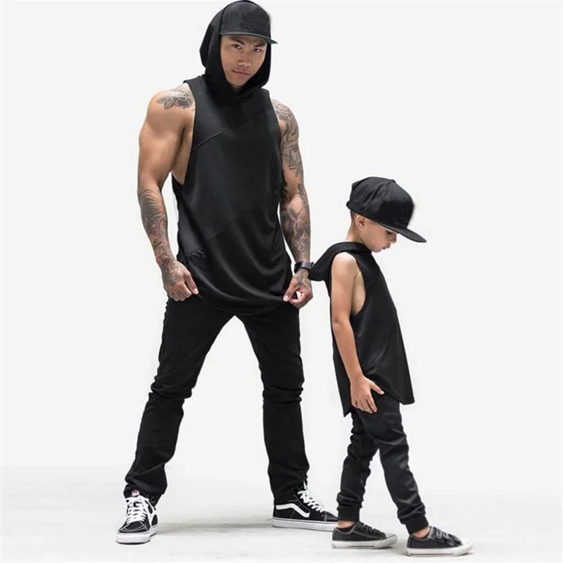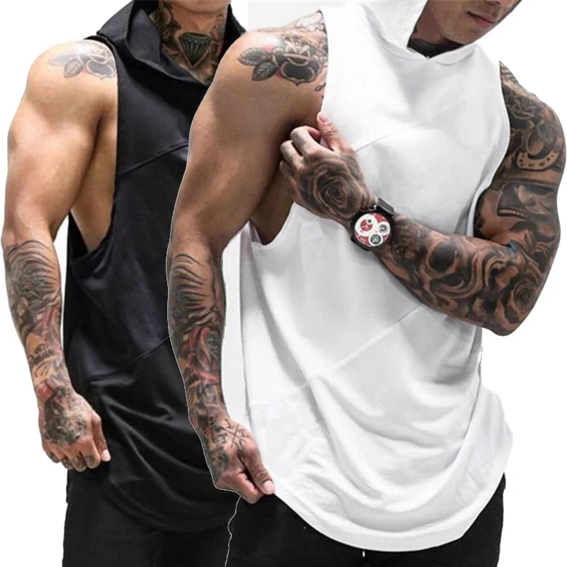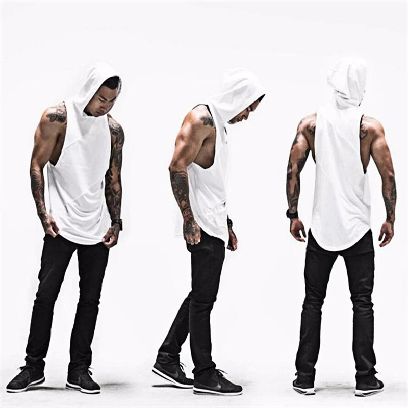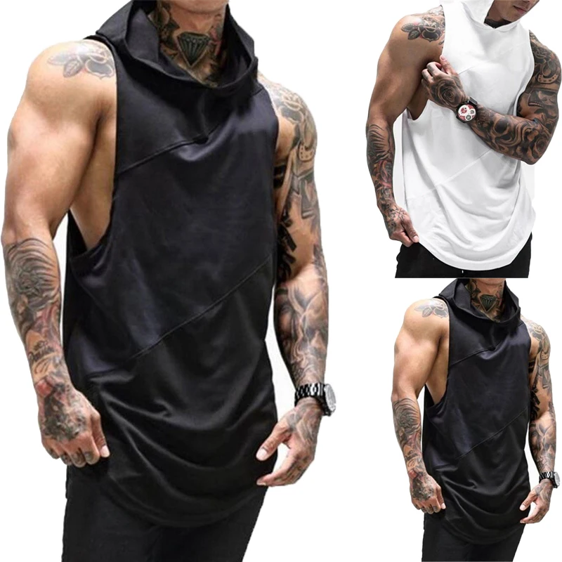 * Описание товара:Для мужчинНовые модные повседневные Летние однотонные топы без рукавов с капюшоном