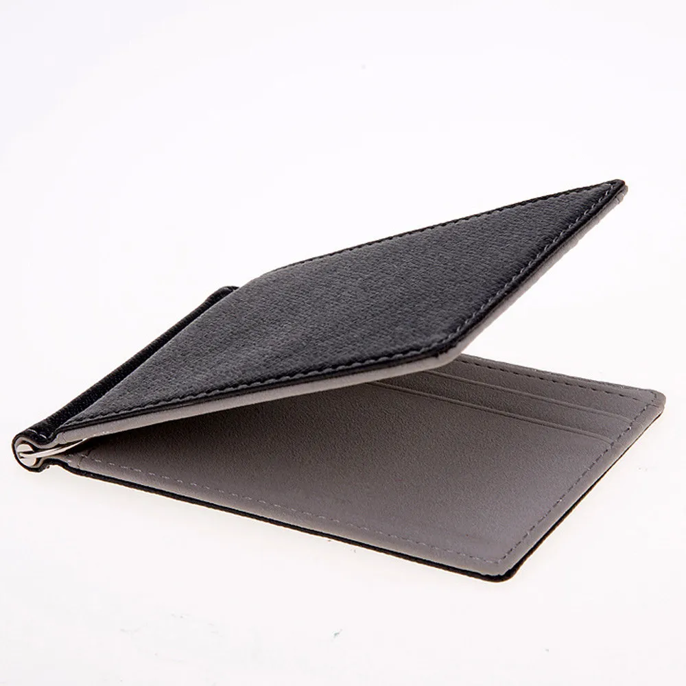 Мужской кожаный тонкий зажим для денег Кошельки Черный ID кредитный держатель для карт