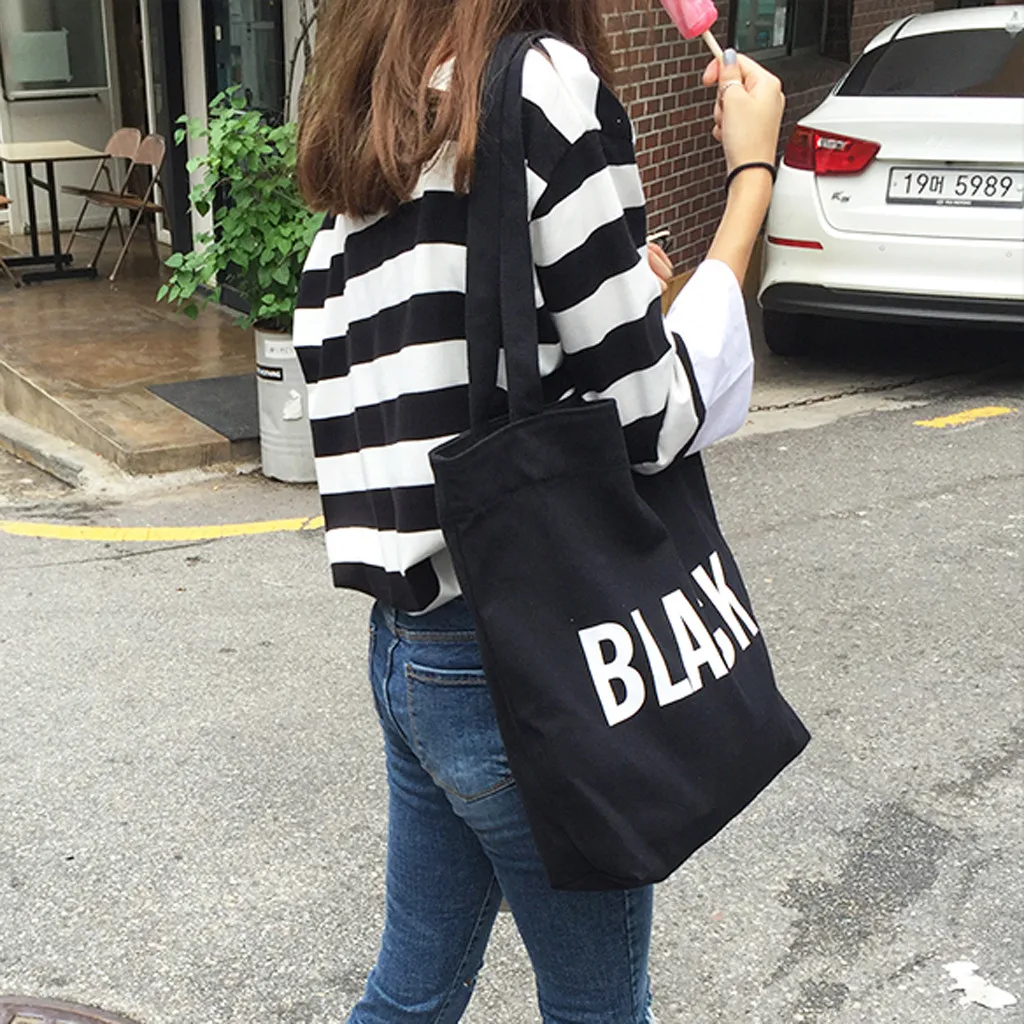 Модные женские холщовые сумки через плечо с буквенным принтом, Большая вместительная сумка для покупок