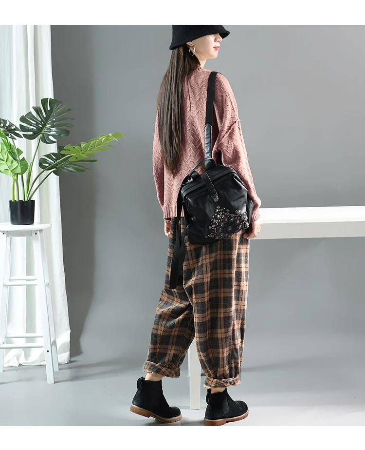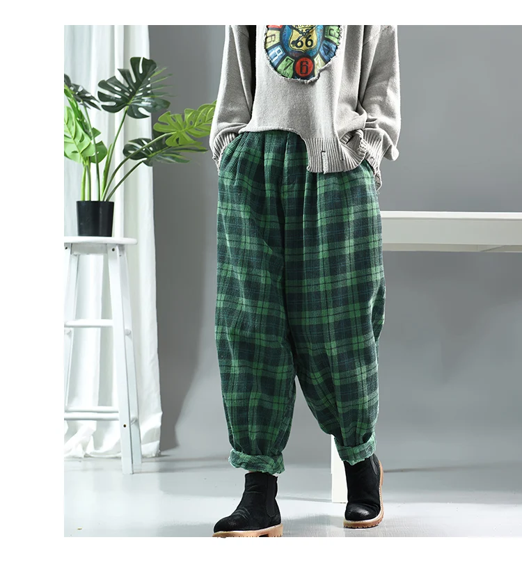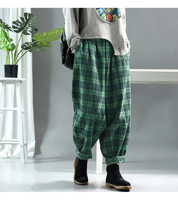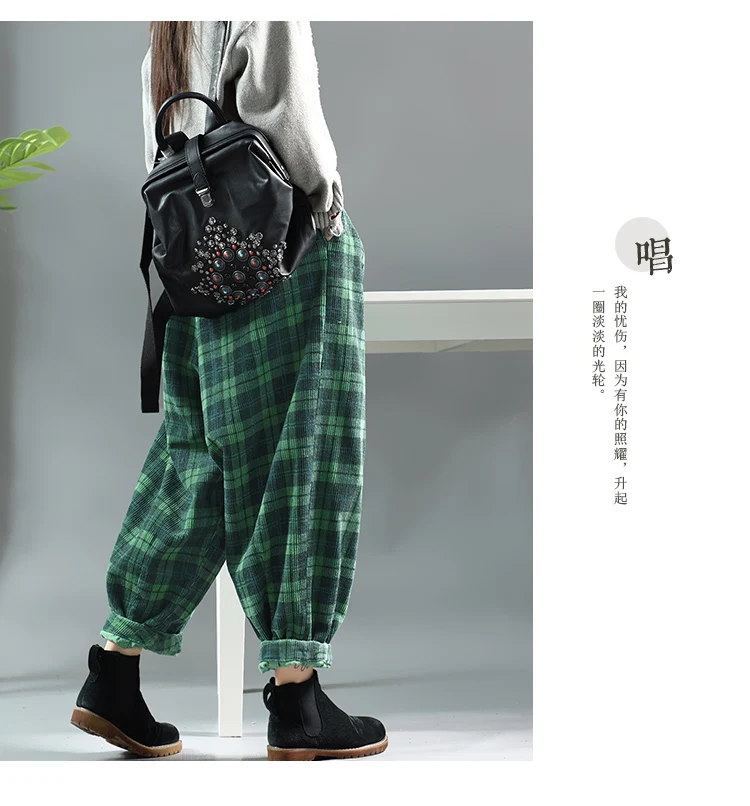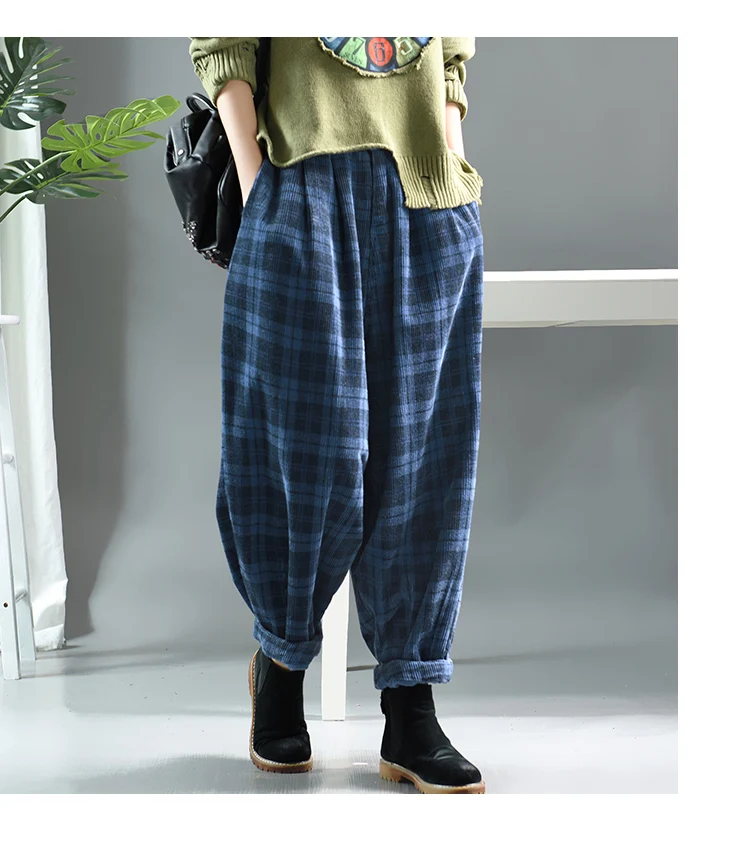 Повседневные женские клетчатые брюки, новинка 2019, осень-весна, эластичная талия, Ретро стиль, с карманами, Модные свободные женские брюки