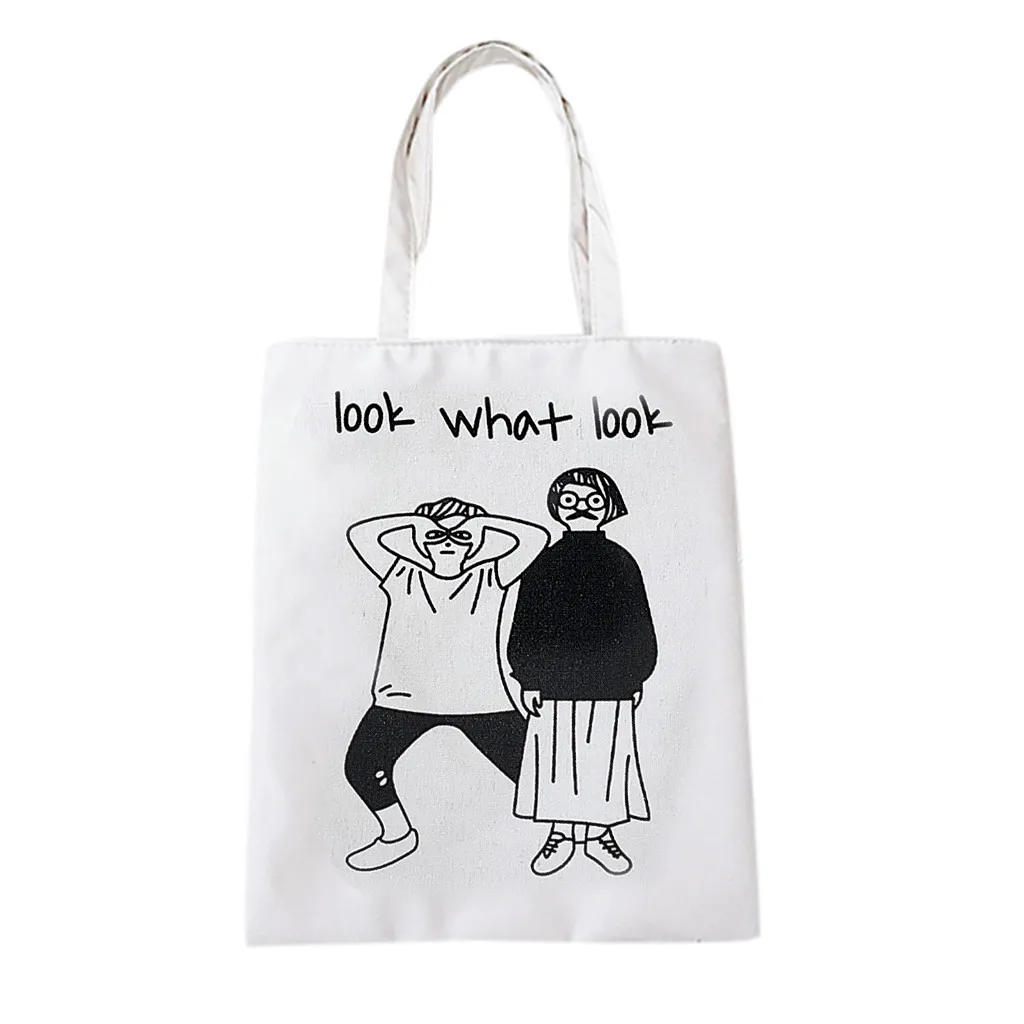 Женская Холщовая Сумка для покупок, сумка через плечо с мультипликационным принтом, вместительная Студенческая сумка
