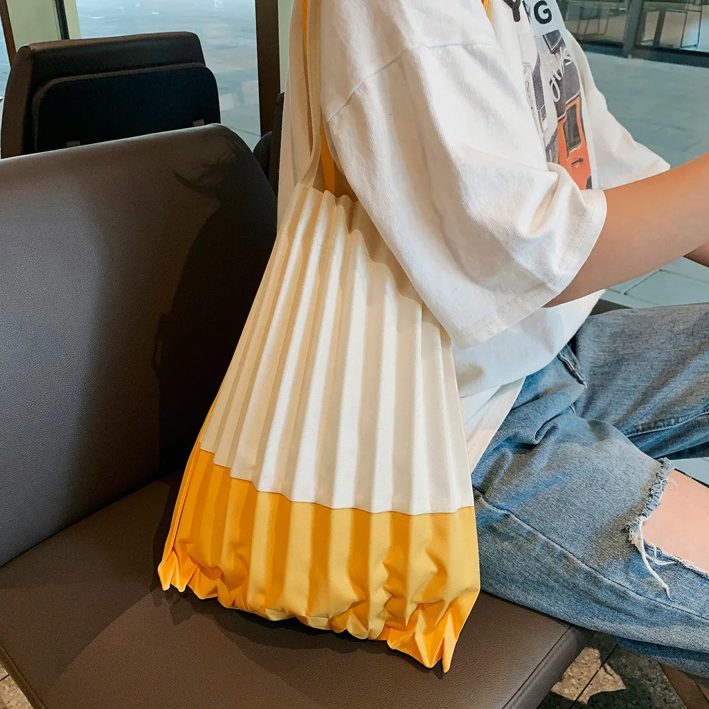 Женская Повседневная Сумка-тоут ярких цветов со складками, холщовая Большая вместительная сумка через плечо