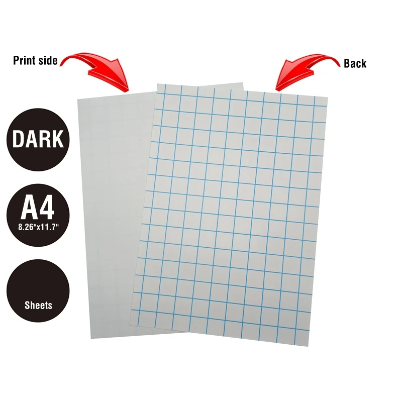 INCLUDED IN PACK - 10 sheets of heat transfer paper for dark fabric as well as parchment paper to protect the design during heating. Works best with an inkjet printer and cotton or cotton/poly blend fabrics.