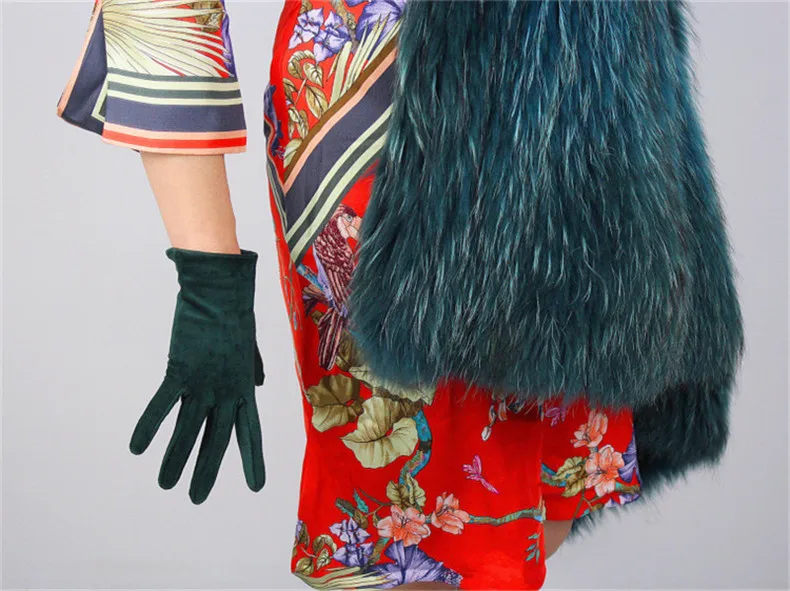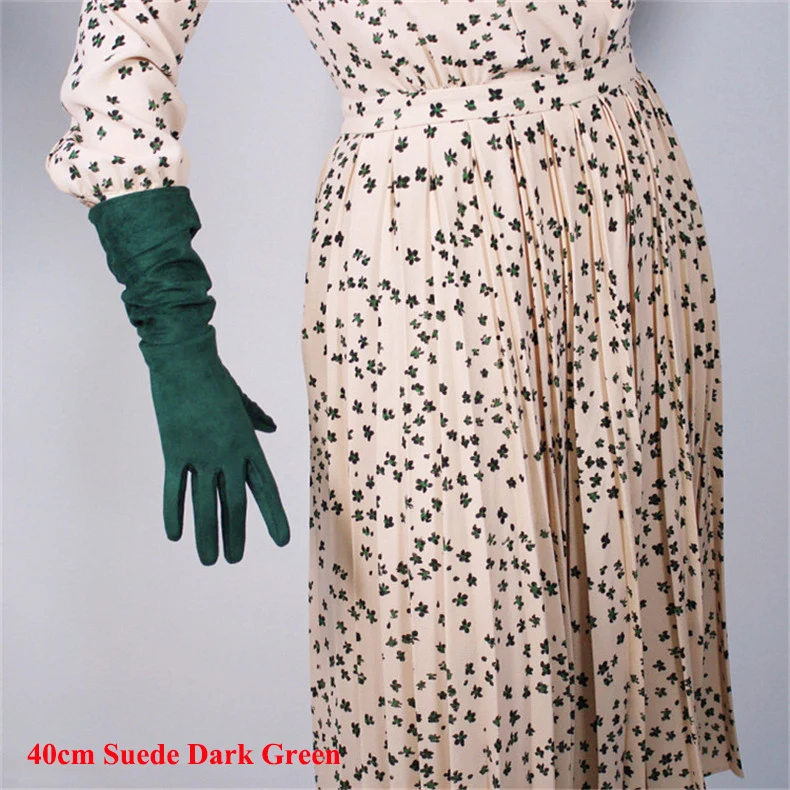 Suede Extra Long Gloves 60cm Emulation Leather Gloves Over Elbow Matte Scrub Forest Green Dark Green Female Suede Gloves WJP22