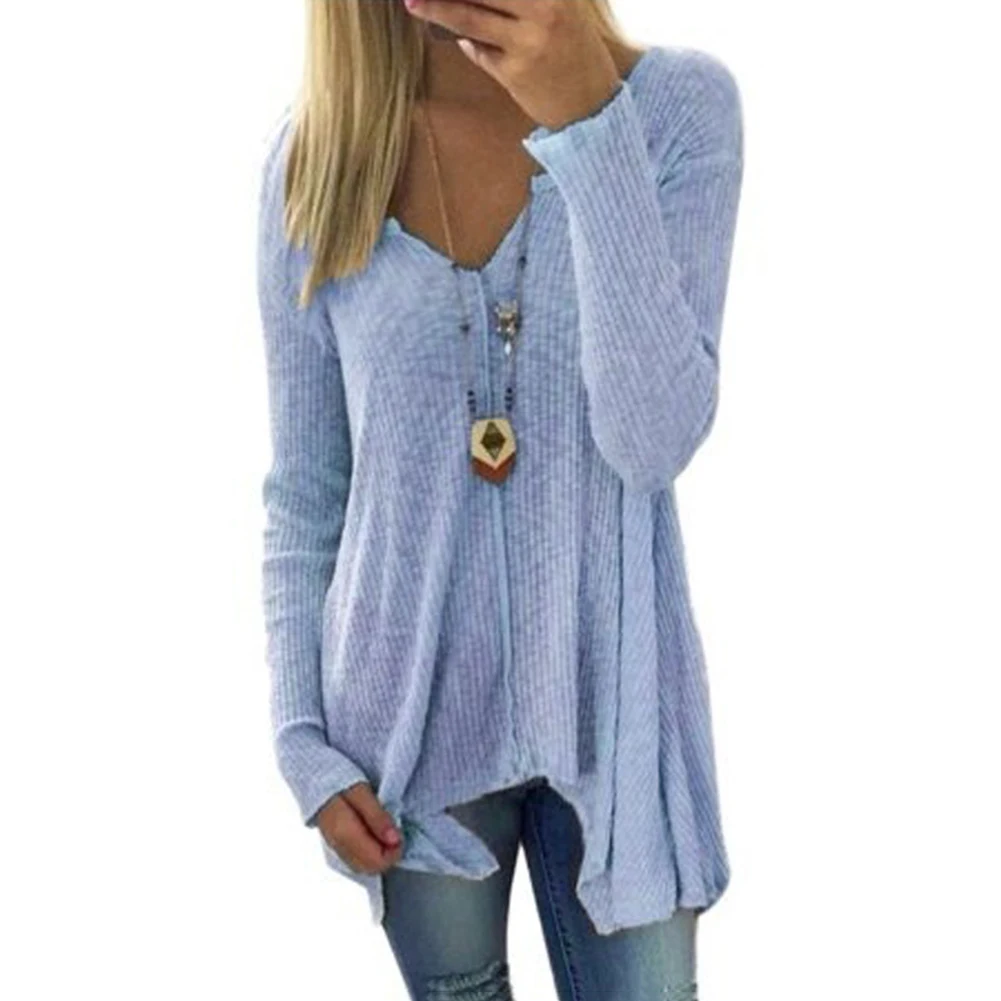 Женский Повседневный свитер на осень и зиму, однотонный вязаный свитер с v-образным вырезом и длинным рукавом, необычный Свободный пуловер, свитер для женщин