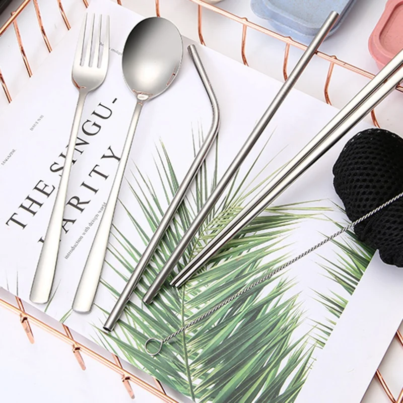 Экологичность: посылка посуды включает в себя портативные многоразовые столовые приборы из нержавеющей стали и соломинку, что помогает уменьшить использование одноразовой посуды и пластиковых соломинок.