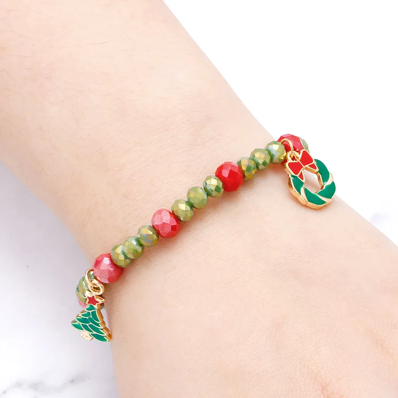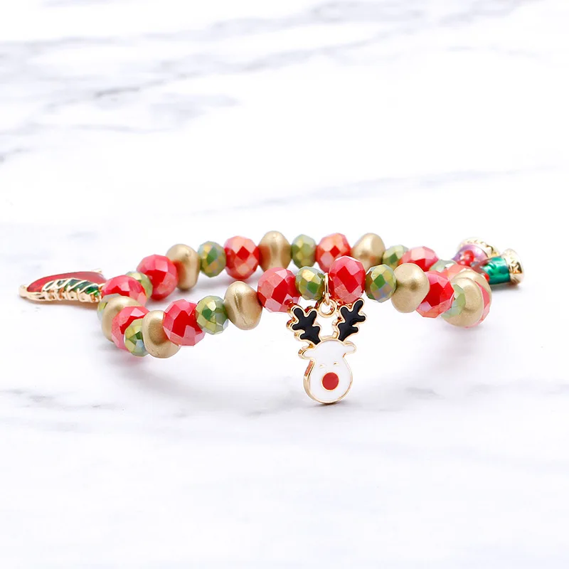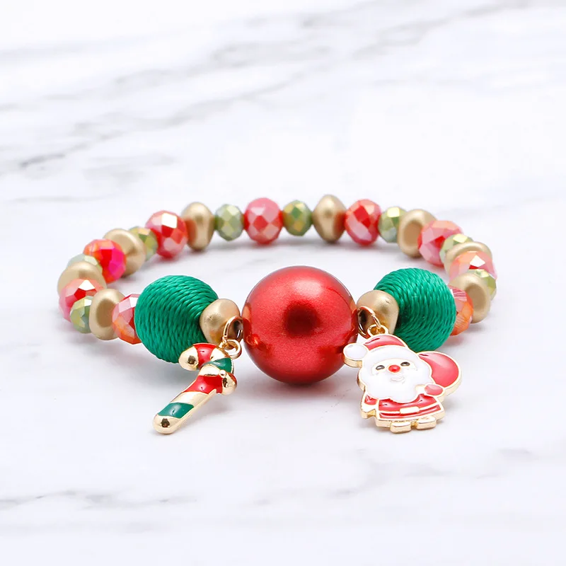 10 шт., Рождественский браслет из бисера для женщин, дети, стрейч, Санта-Клаус, карамель, трость, лося, рог, дерево, снежинка, очаровательный браслет, подарок, ювелирное изделие