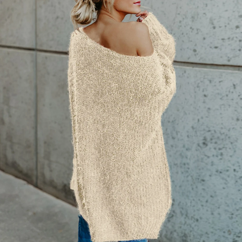 Женский сексуальный вязаный свитер с открытыми плечами, однотонный Свободный пуловер с расклешенным рукавом, джемперы, женский норковый кашемировый свитер, пончо