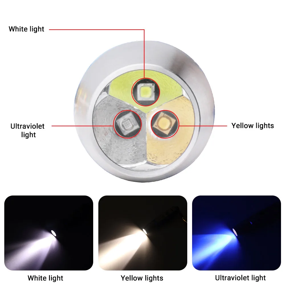 -Есть 3 вида светильник, белый + желтый + фиолетовый 365nm.
