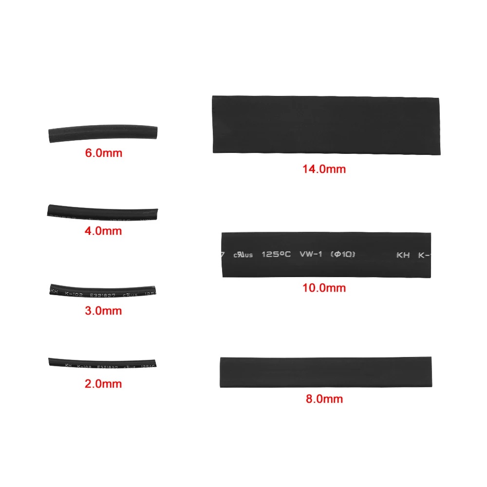 Большая коллекция термоусадочных труб, 8 спецификаций, 5 цветов, 164 шт