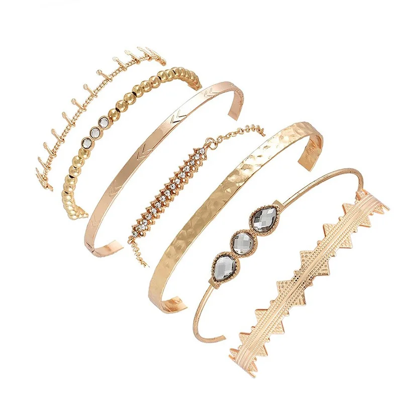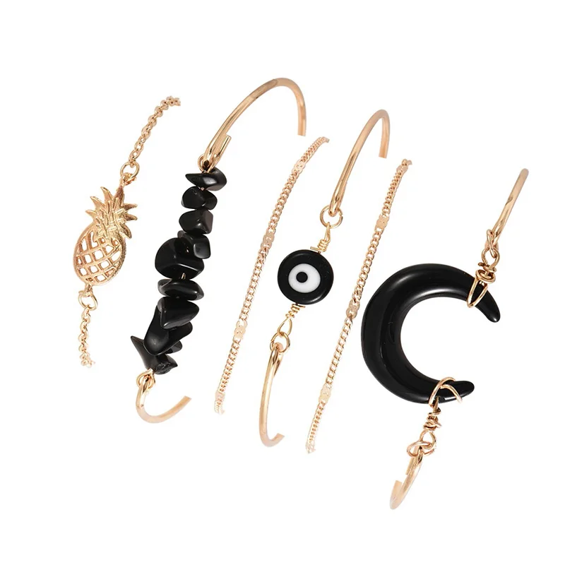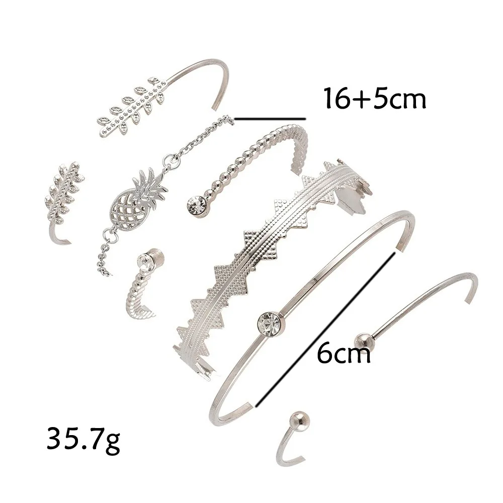 DIEZI 6pcs/set Pineapple Leaves Bracelets & Bangles Silver Chain Bracelet Sets For Women 2019 New Bohemian Rhinestone Jewelry
