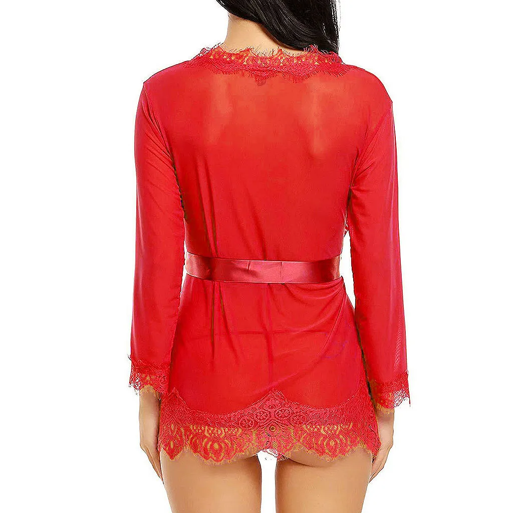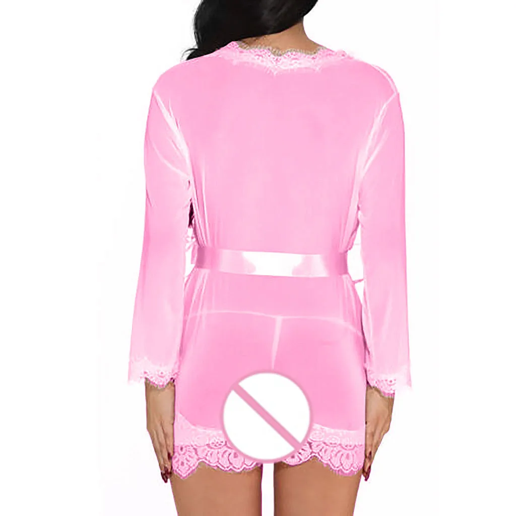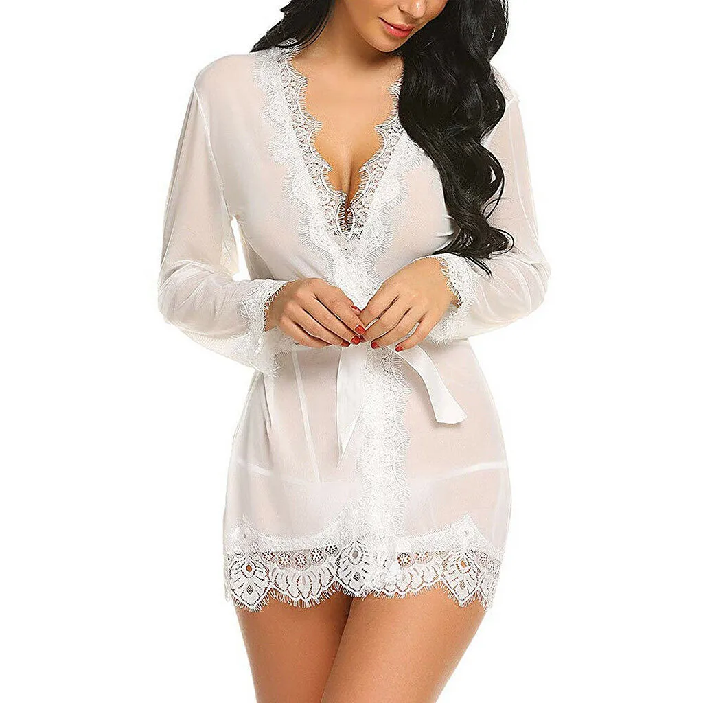 Женская сексуальная простая Сексуальная Ночная сорочка с v-образным вырезом, ночная сорочка, нижнее белье, Кукольное Белье для сна, сетчатый халат с поясом, 2019