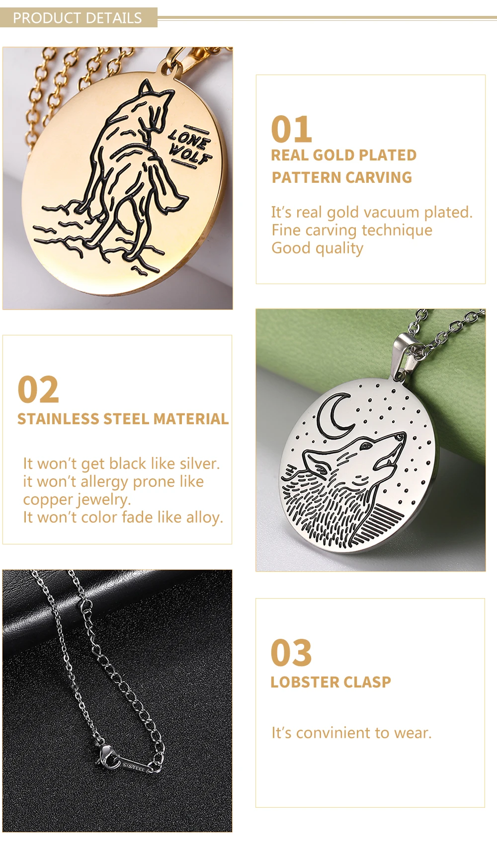Ожерелье с кулоном в виде волка для мужчин и женщин, Амулет из нержавеющей стали, начальная Регулируемая цепочка, ожерелье, ювелирное изделие, подарок
