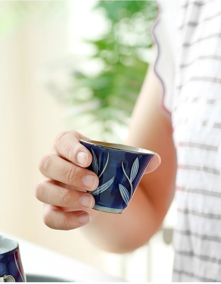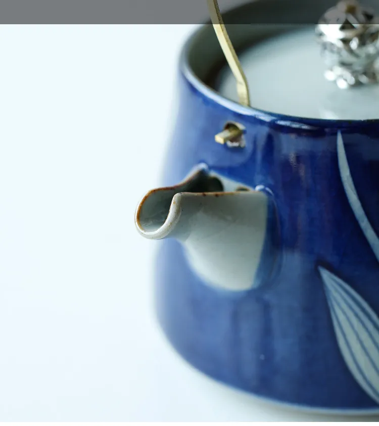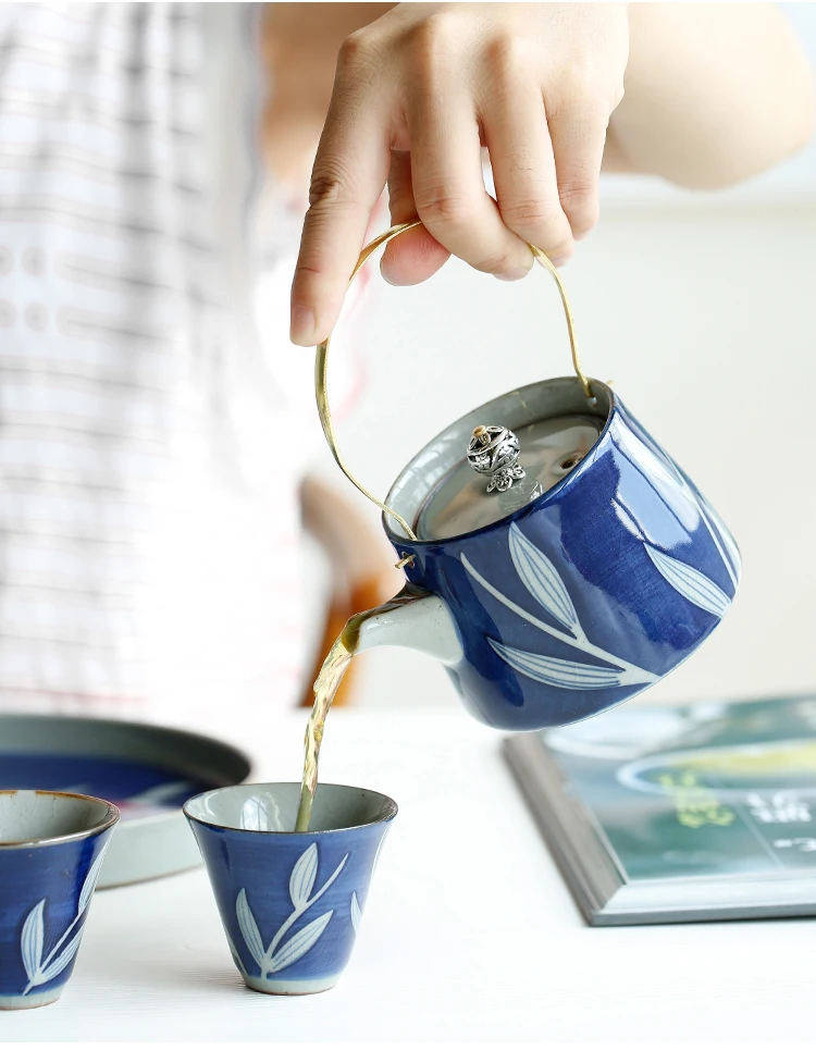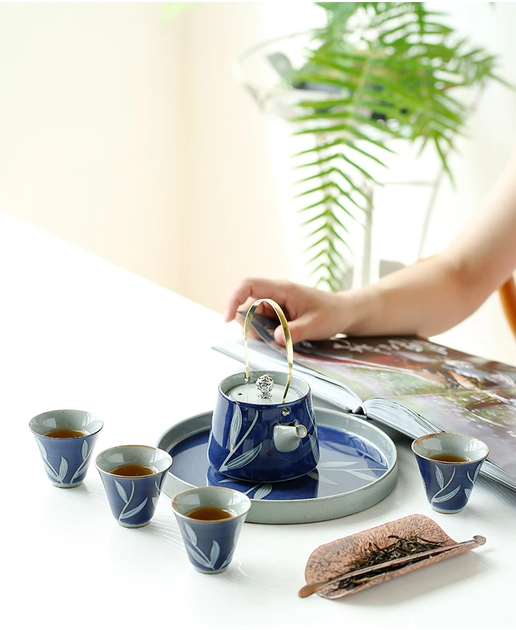 Ceramic Hand-painted Portable Beam Pot Tea Set Glaze Color Kiln Ice Crack Open Film Home Retro Teacup Tray Kung Fu Black Teaware