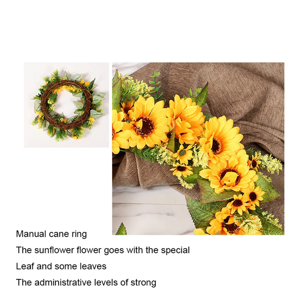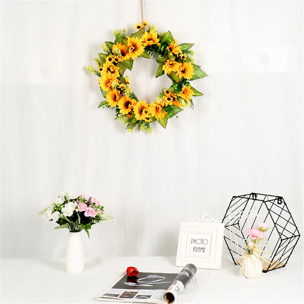 Искусственный подсолнух осенний венок Подсолнух Эвкалиптовый листья ротанга венок Настенный декор украшение интерьера домашний Декор 25