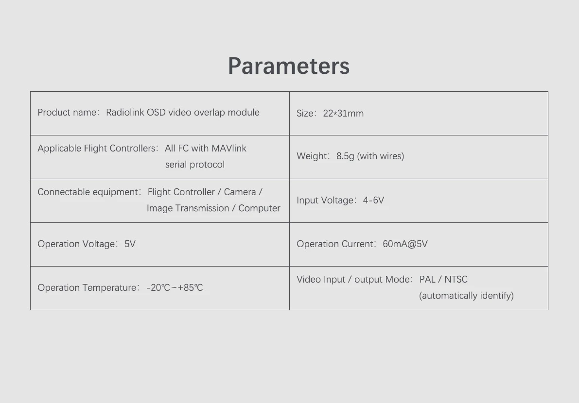 Это модуль osd наложения видеоизображений, который совмещает OSD сигнал и видеосигнал камеры. Он совместим с Mini Pix/Pixhawk система управления полётом, чтобы получить данные полета. Кроме того, он имеет usb-порт для подключения компьютера, а затем может настроить через приложение RadioLinker OSD_Tool. Параметры: Название товара: мини модуль OSD для Mini PIX/Pixhawk система управления полётом. Как настроить 1. Подключите этот мини-модуль OSD к компьютеру через usb-кабель Andriod. 2. Откройте приложение конфигурации "RadioLinker OSD_Tool" 3. Найдите "OSD_Config" из файла, а затем дважды нажмите, чтобы войти в "MinimOSD_2.4.1.5" 4. Входит в страницу конфигурации (операция, как показано на рисунке 5 на странице продукта) Если вы также подключаете другие модули, пожалуйста, найдите правильный порт CMO, как показано ниже. (A. Откройте "Мой компьютер" B. Получите "Менеджер устройств" С. Затем выберите com-порт из "последовательного порта". D. Наконец, выберите тот же COM на странице конфигурации.) 5. Настройка параметров и сохранение. (Показано на рисунке 6) -A. Выберите данные, которые вы хотите получить по левому листу. -B. Потяните мышь, а затем можно перемещать положение отображения данных в правую сторону. -C. После установки параметра нажмите «файл» и «сохранить OSD файл». -D. Если вам нужна та же Настройка, просто найдите «Файл» и «открыть OSD файл», тогда он может показать. 6. Изменить язык. (Как на последней фотографии)
