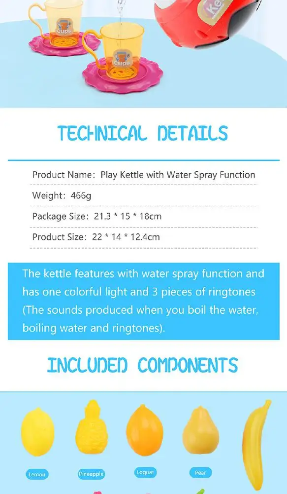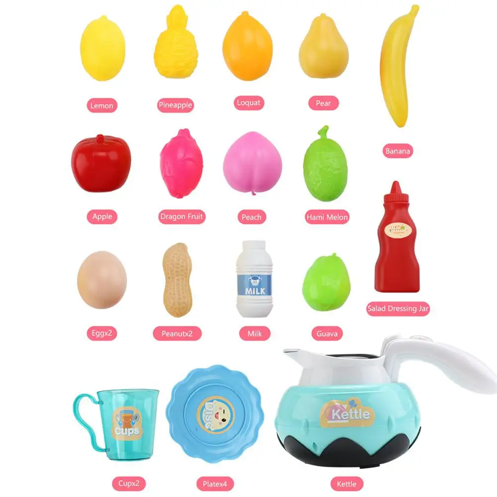 1 * чайник, 2 * стакан для воды, 4 * тарелка, 1 * Лемон, 1 * груша, 1 * яблоко