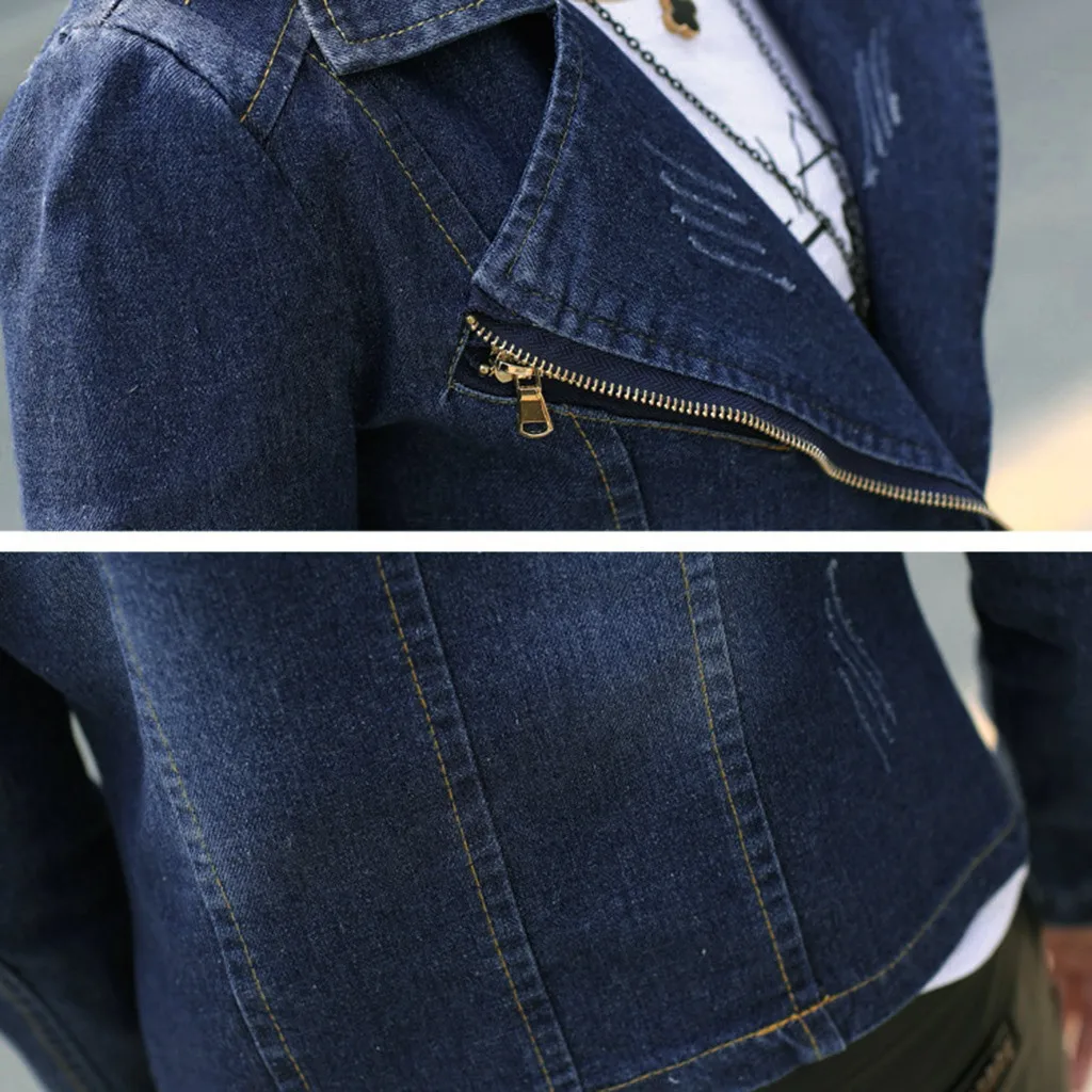 Женская мода нагрудные Твердые повседневные джинсовые пуговицы Блейзер джинсовая куртка кардиган