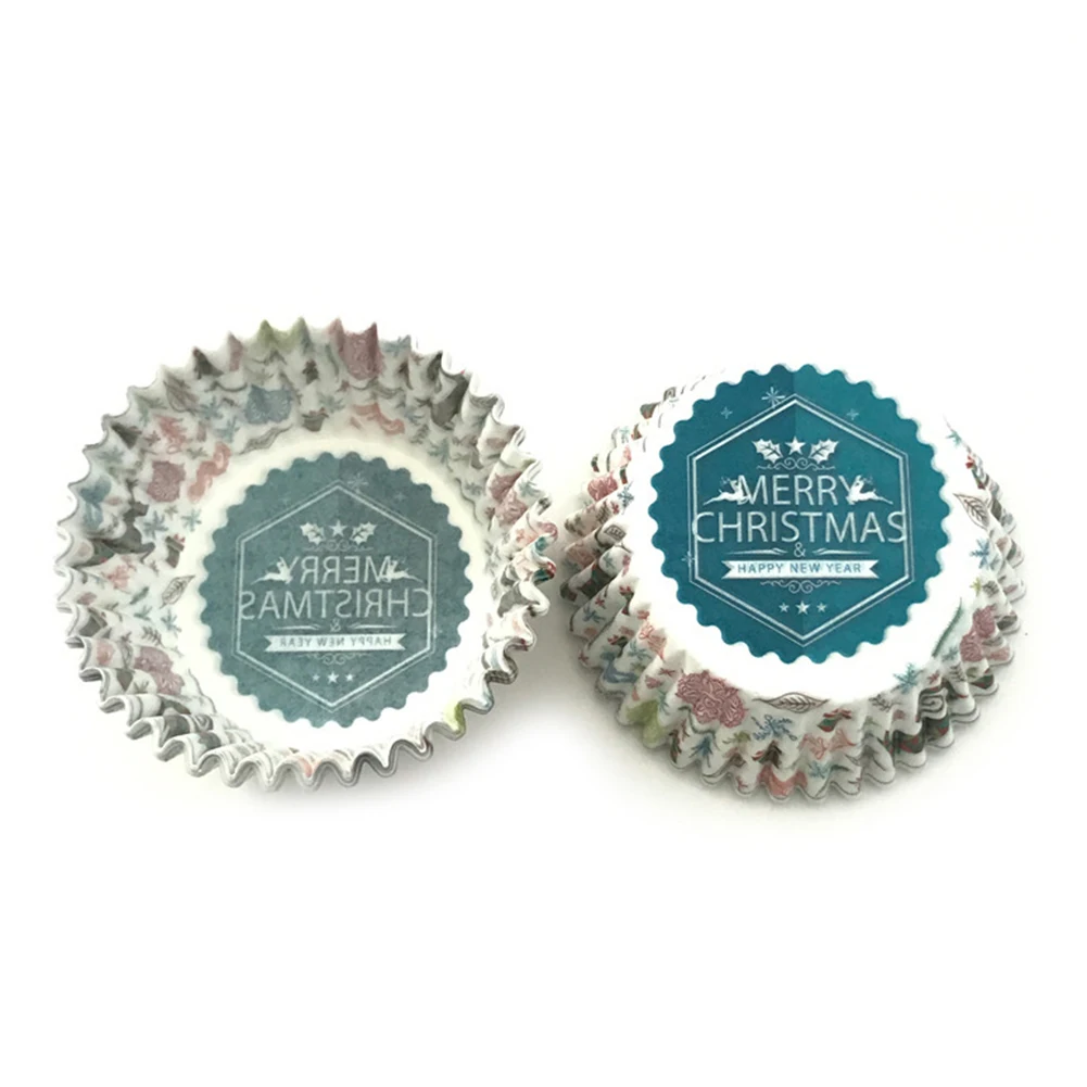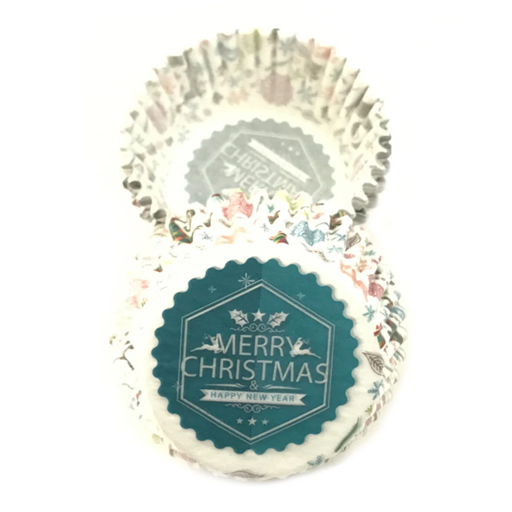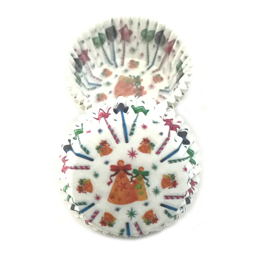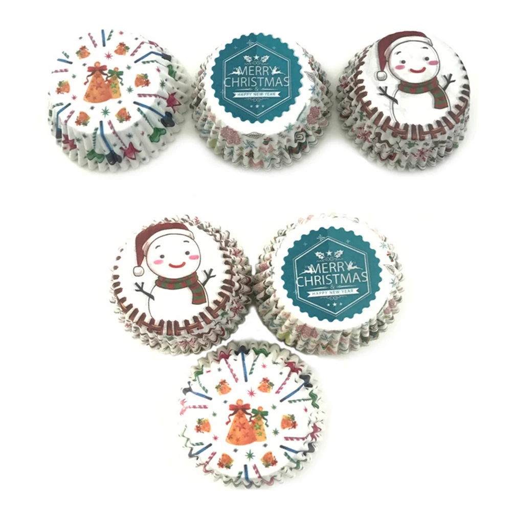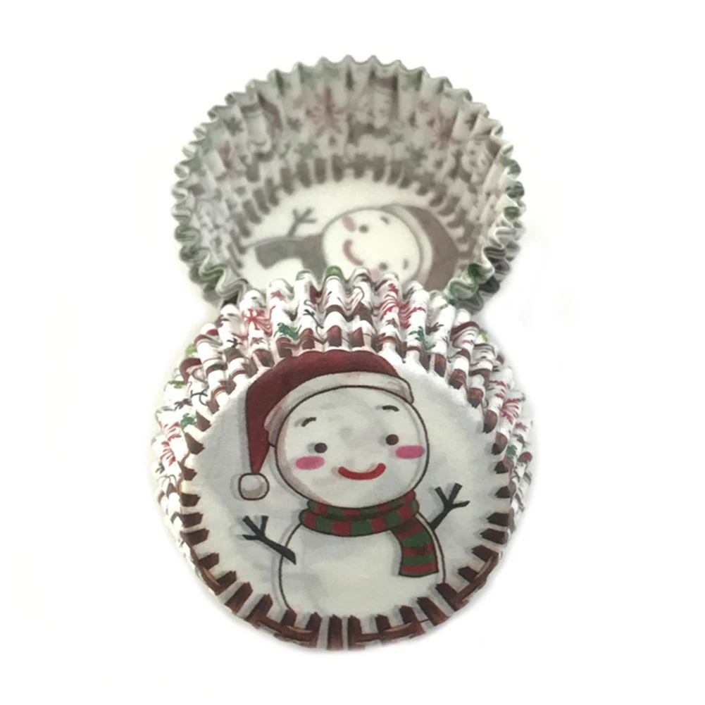 100 шт Рождественская шапка Снеговик печать полосатые обертки для кексов формочка для выпечки кексов лоток