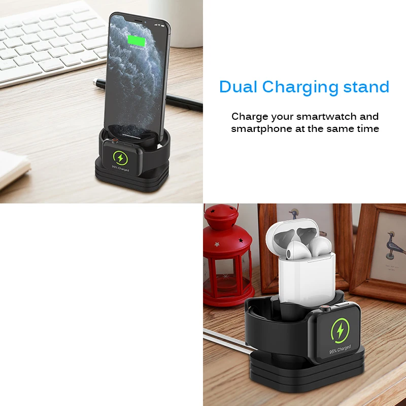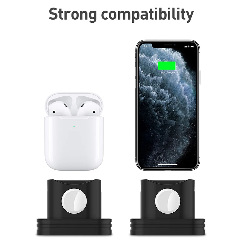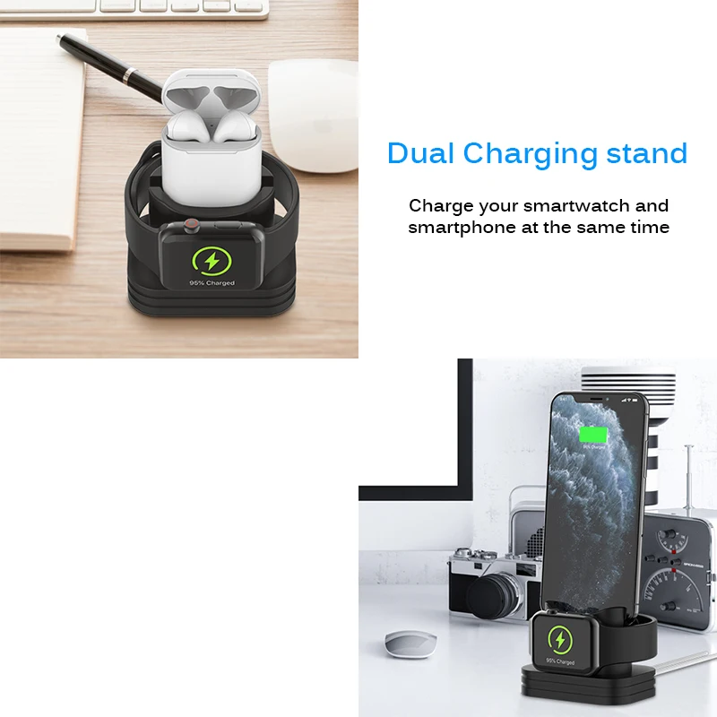Подставка для зарядки 2 в 1 подходит для размещения на столе, в офисе, дома, спальне, комнате в общежитии и так далее, что Совместимо с iwatch, для air pods, для большинства смартфонов.