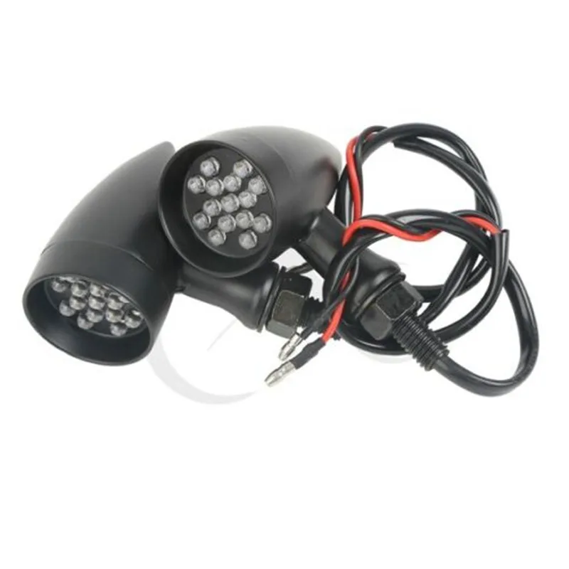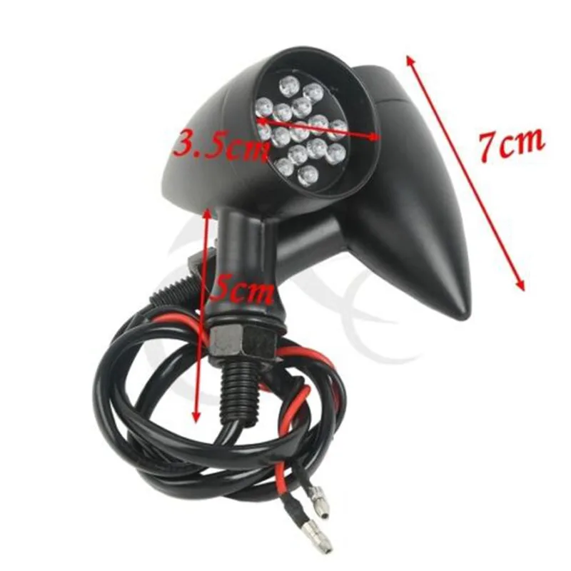 Condition:Aftermarket 100% New and high quality Black Amber Bullet Turn Signal for Harley Material:Zinc alloy Bulb Type: 15 Individual LED's in full star panel pattern Comes with 2 wires LED Light Color: Amber Mounting Bolts size: 10mm Housing Color: Black