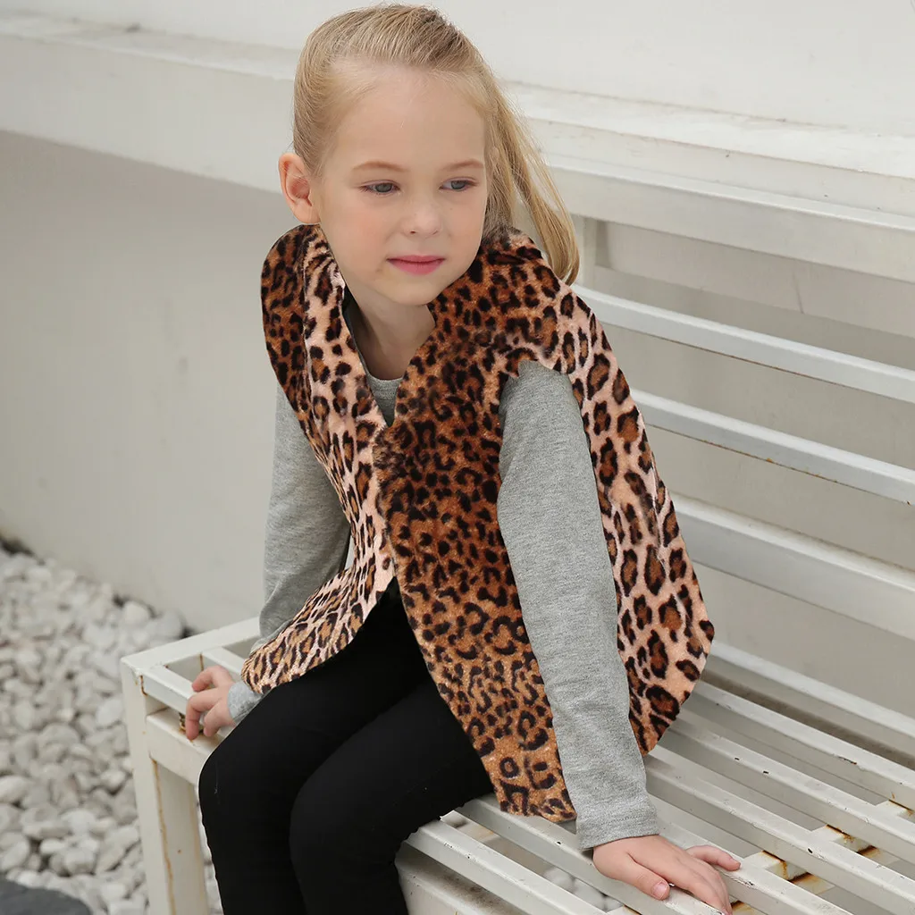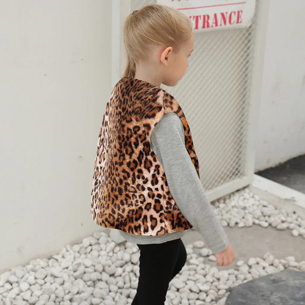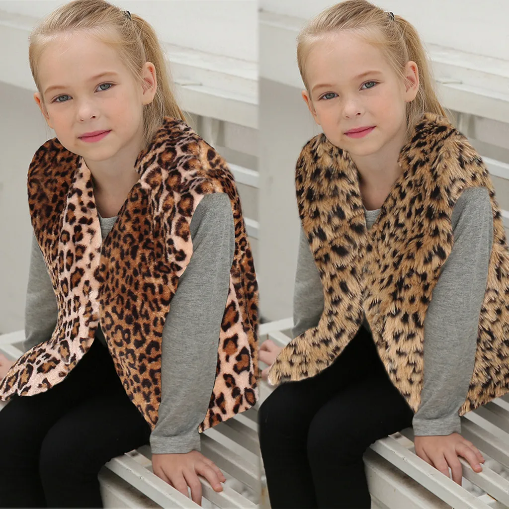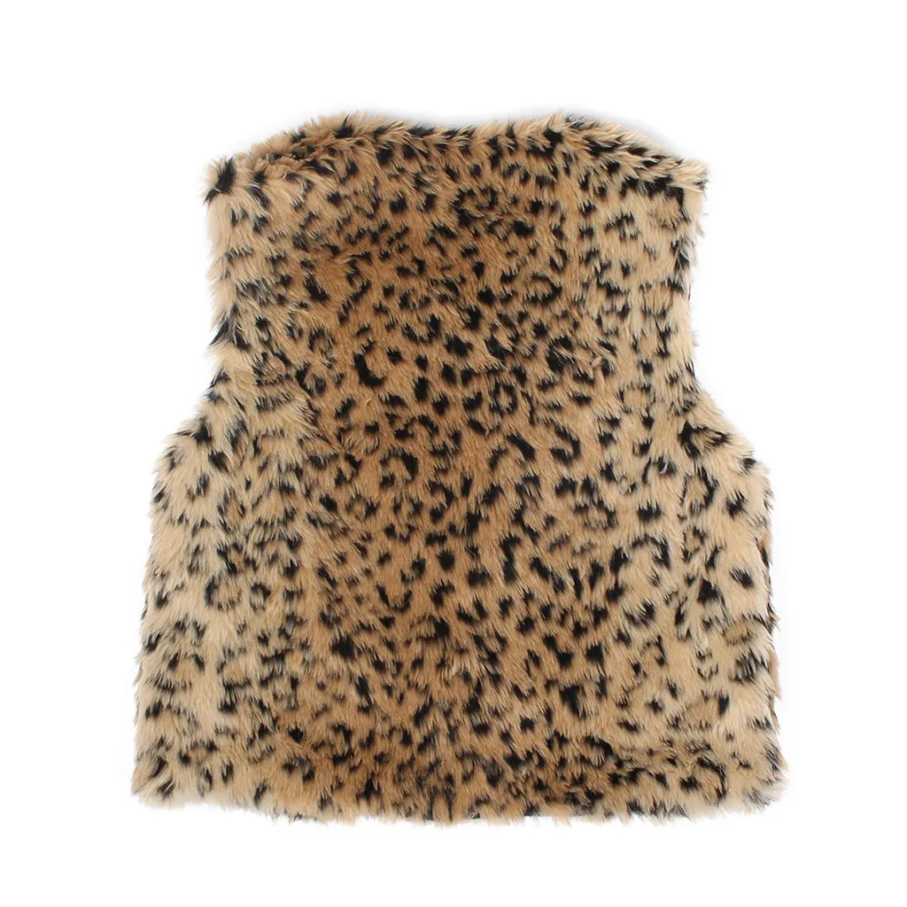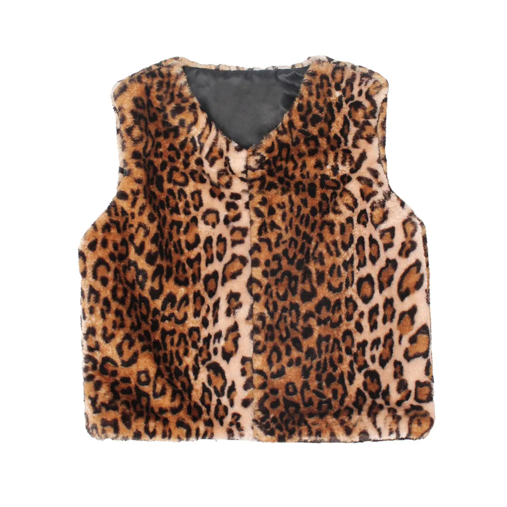 Теплое зимнее леопардовое пальто из искусственного меха для маленьких девочек верхняя одежда, жилет